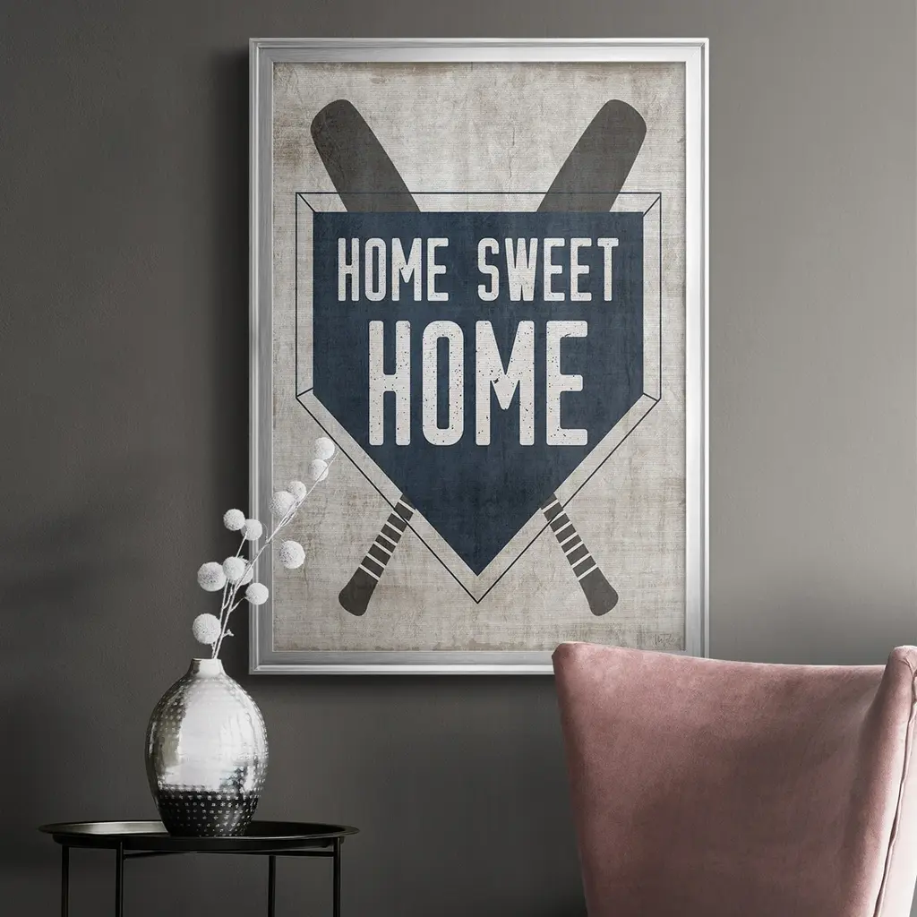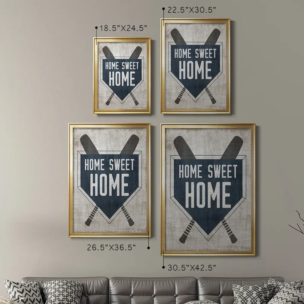 Home Sweet Home Base Premium Framed Print - Ready to Hang A Premium Framed Print created to last. Framed in distressed wood and available in an array of sizes and colors Featuring a beveled a solid wood stretcher bar, each piece comes ready to hand 4 SIZES AVAILABLE 30.5''X42.5'' - Overall Size 26.5'X36.5'' - Overall Size 22.5''x30.5'' - Overall Size 18.5''x24.5'' - Overall Size Each piece is made to order. Each piece comes with hanging hardware. Made in the USA Ready to Hang