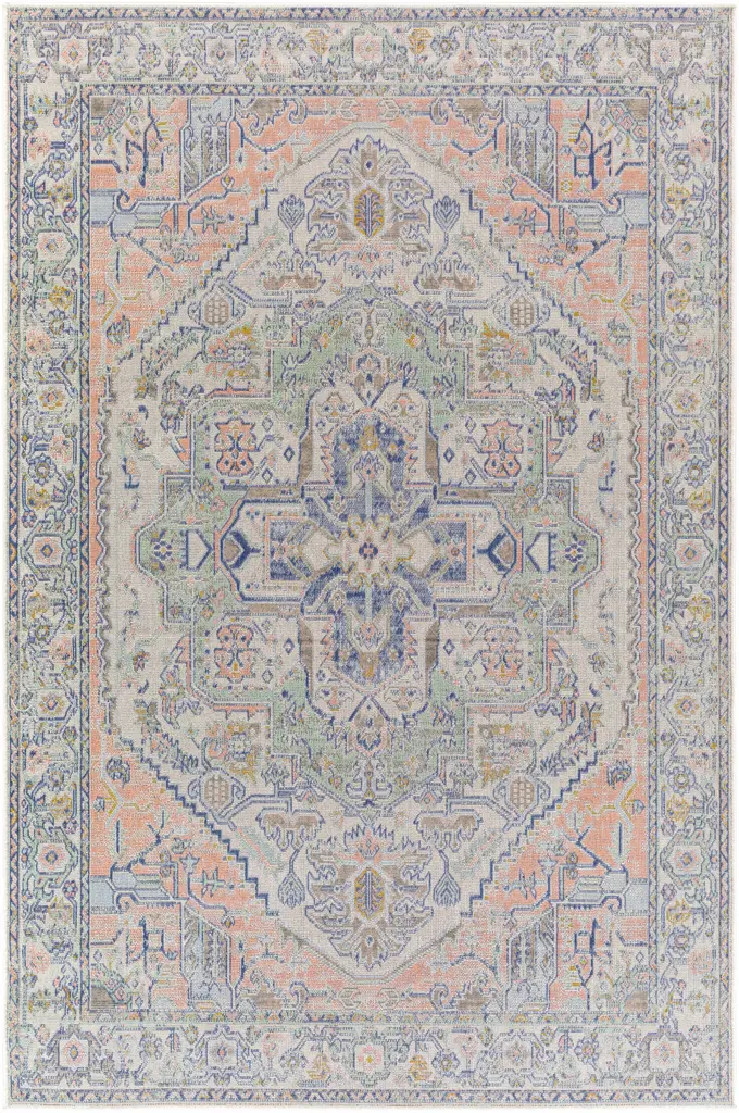 Low pile and detailed design give this rug the look and feel of handmade silk. A floor covering that offers timeless style, it features a classic pattern and traditional colors. Cutting edge technology applies a new heat transfer design process, delivering sharp, lively details with crisp edges and pops of color. The result is a silky but still affordable rug bound to beautify any room. Part of a multi size, multi color collection, each rug is made from easy care polyester.