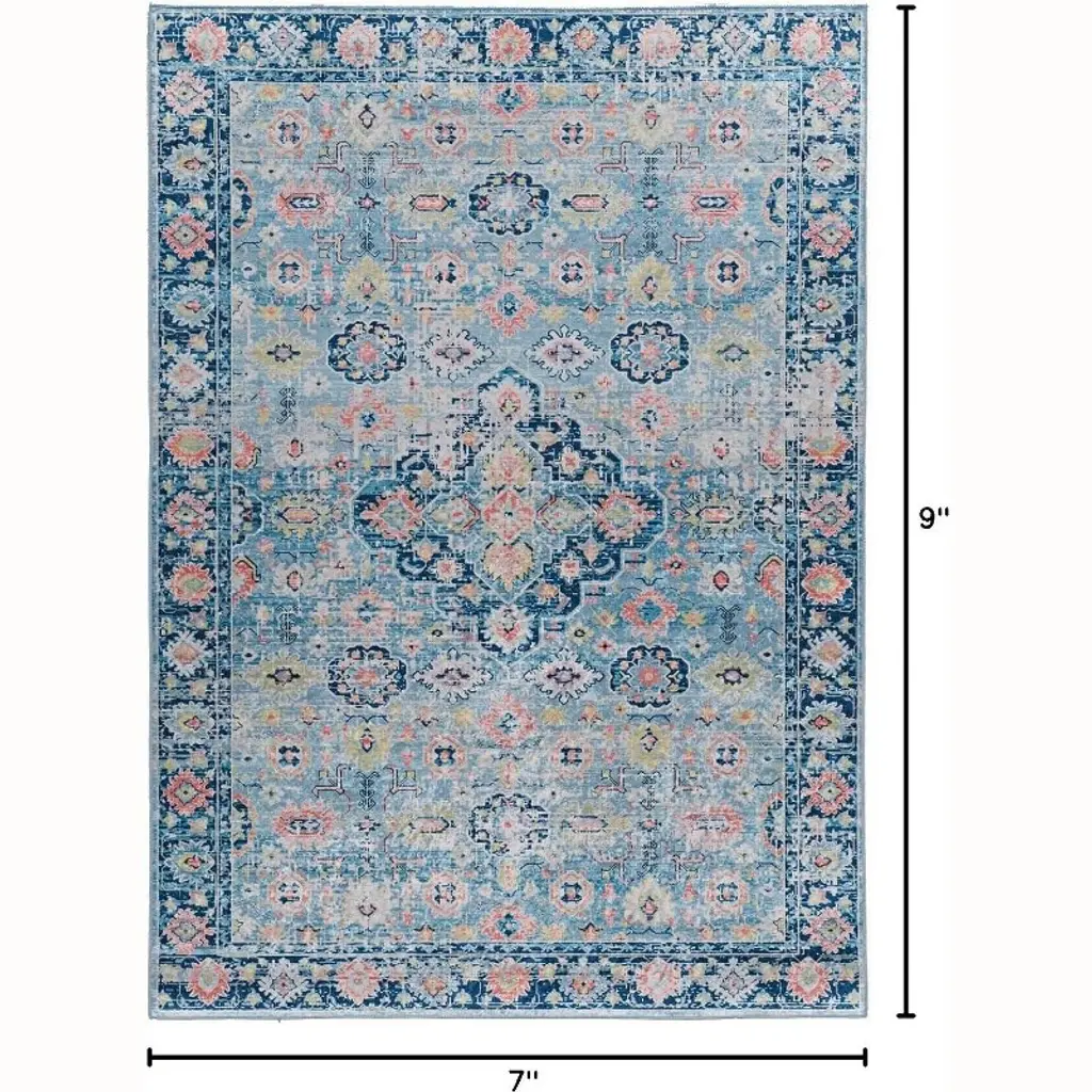 Homestock Emerald Canton Blue & Ivory 6.7x9.7, Traditional, Woven With Digital Heat Transferred Printing