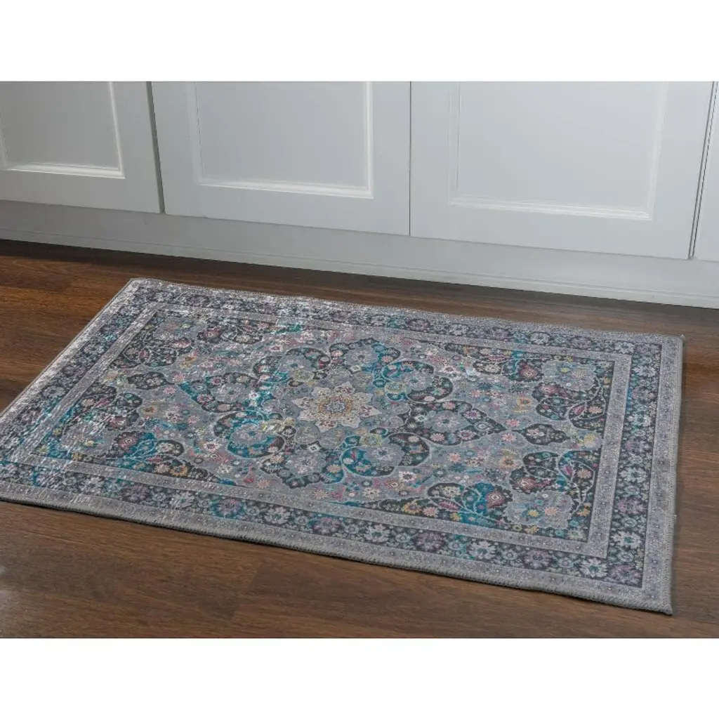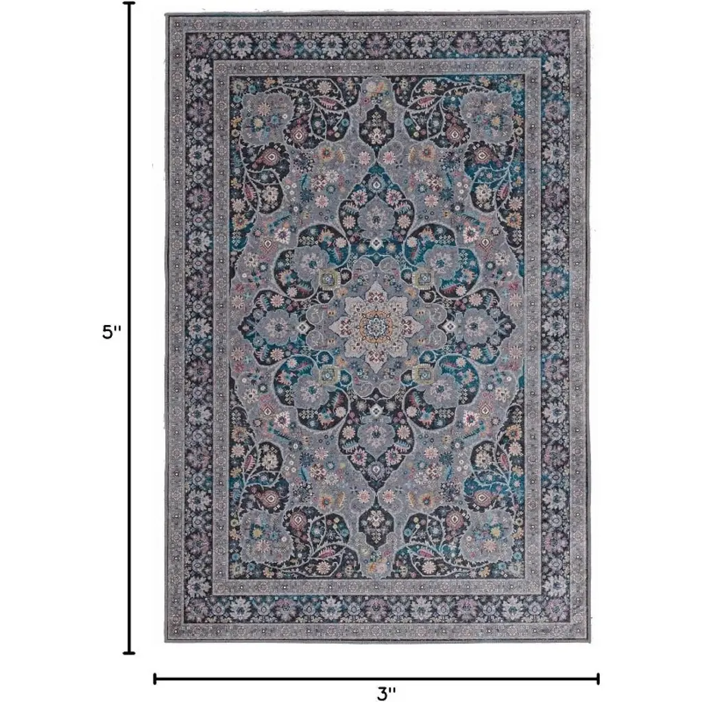 Homestock Emerald Grenier Grey & Teal 3.3x5, Traditional, Woven With Digital Heat Transferred Printing