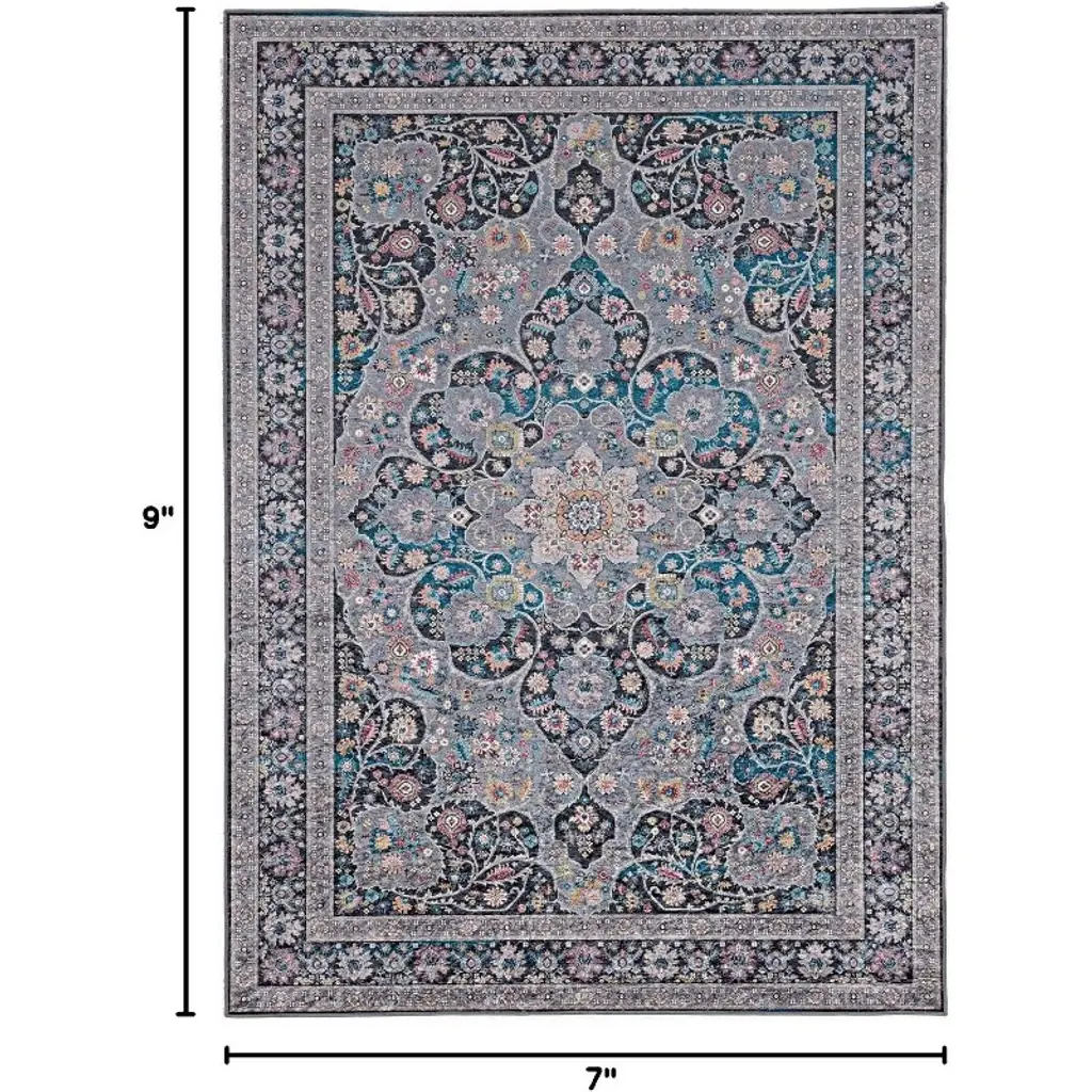 Homestock Emerald Grenier Grey & Teal 6.7x9.7, Traditional, Woven With Digital Heat Transferred Printing