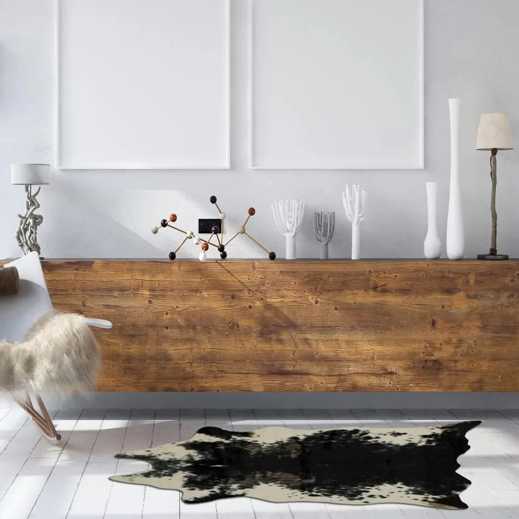 Make a room livelier with a Faux Cowhide rug that uses state of the art printing methods to take patterns and colors from nature and bring them home. Short hair-like polyester material has an authentic appearance, but this rug, one in a faux cowhide collection, offers the benefits of synthetic construction, especially easy care and maintenance. Go wild with an exotic rug that can work with just about any of today’s popular room styles ranging from contemporary and modern, to eclectic, boho or farmhouse.