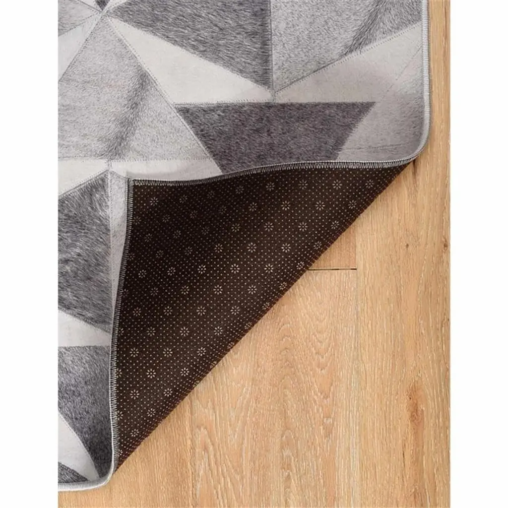 This low profile rug gets its distinct, engaging look from the latest in digital printing technology, to produce cost effective rugs with the look of a custom sewn high end patchwork cowhide rug. The result is a visually striking floor covering that mimics high end patchwork cowhide rugs but at a fraction of the price. The printing is so detailed it gives the appearance of true cowhide hair on hide with details that will trick your eye into seeing the stitches to create the patchwork pattern. Enliven any room environment with a rug that combines subtle trends and graphic elements with the benefit of rubber gripper dots on the back to eliminate the need for an additional rug pad purchase.