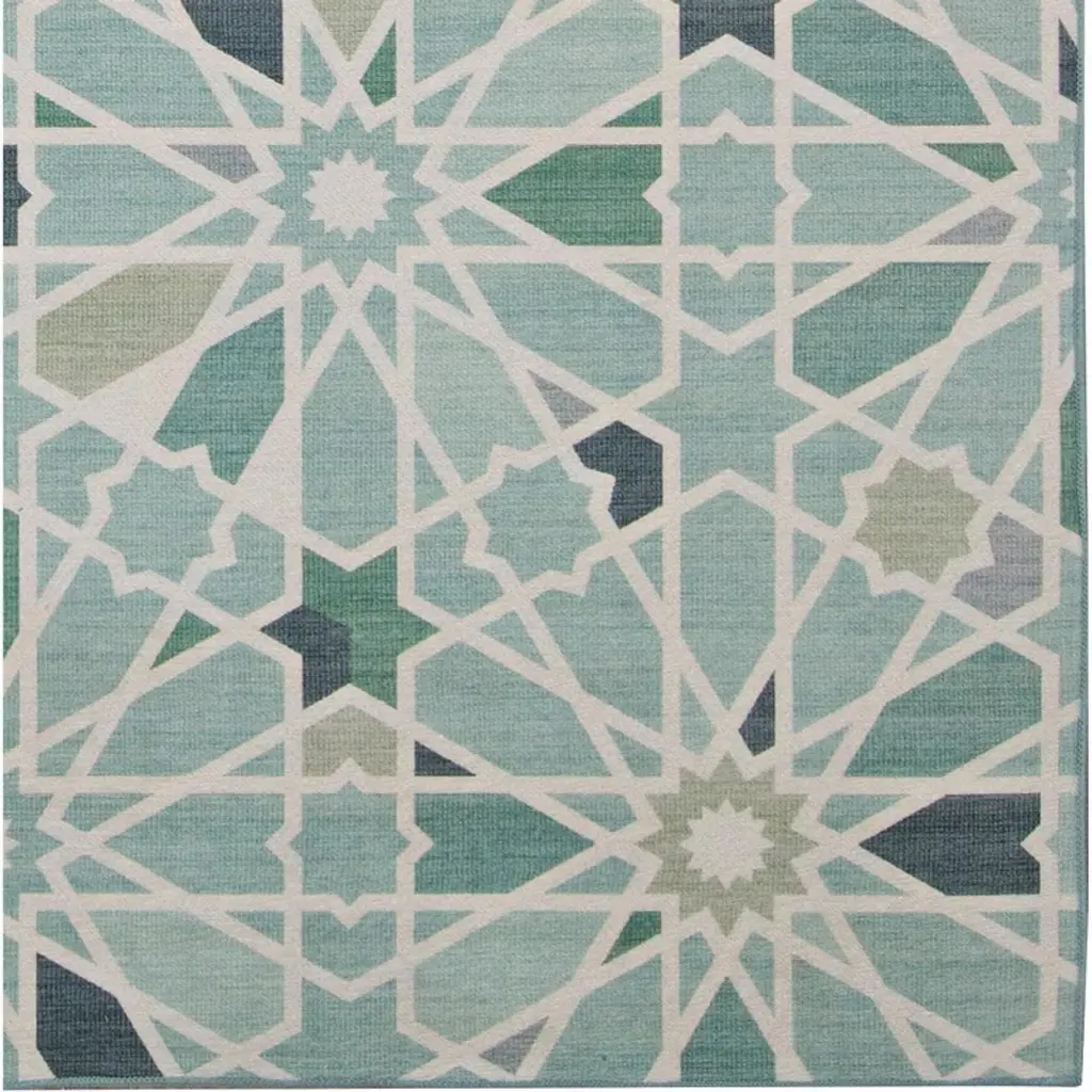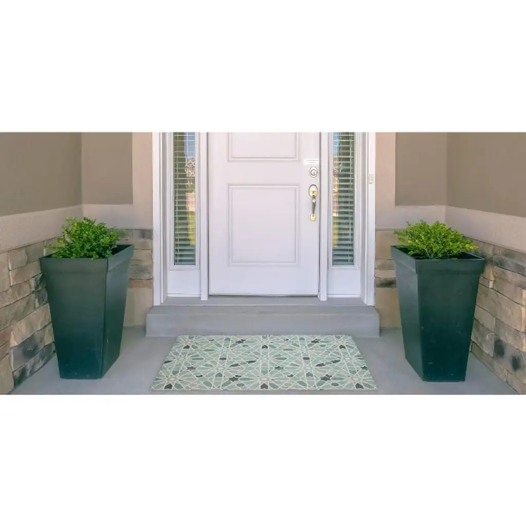 Homestock Outdoor Washable Deltona Green & Ivory 2' X 3', Machine Woven With Printed Designs, Coastal