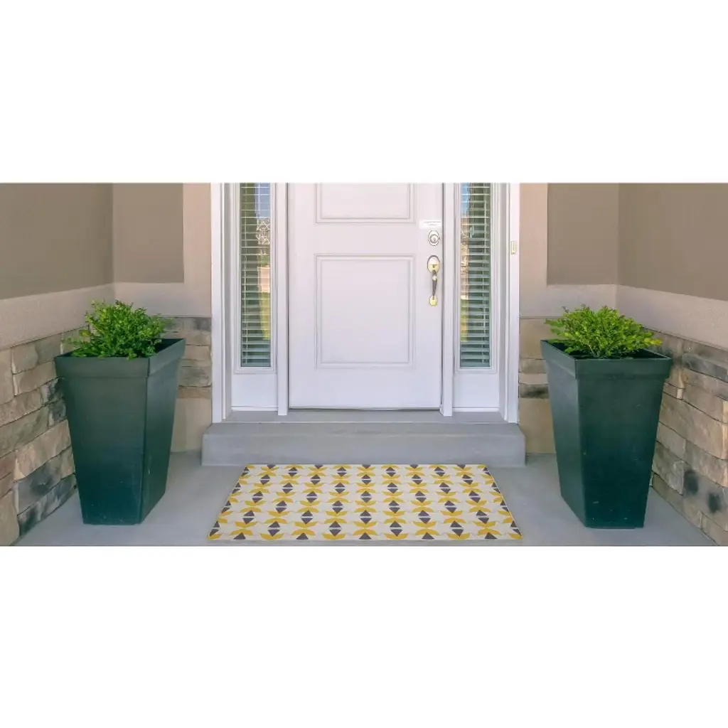 Homestock Outdoor Washable Hialeah Ivory & Yellow 2' X 3', Machine Woven With Printed Designs, Coastal