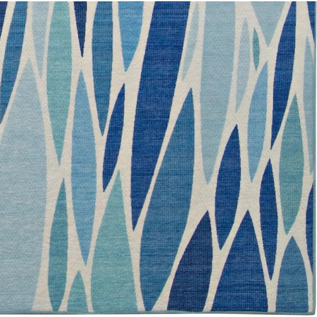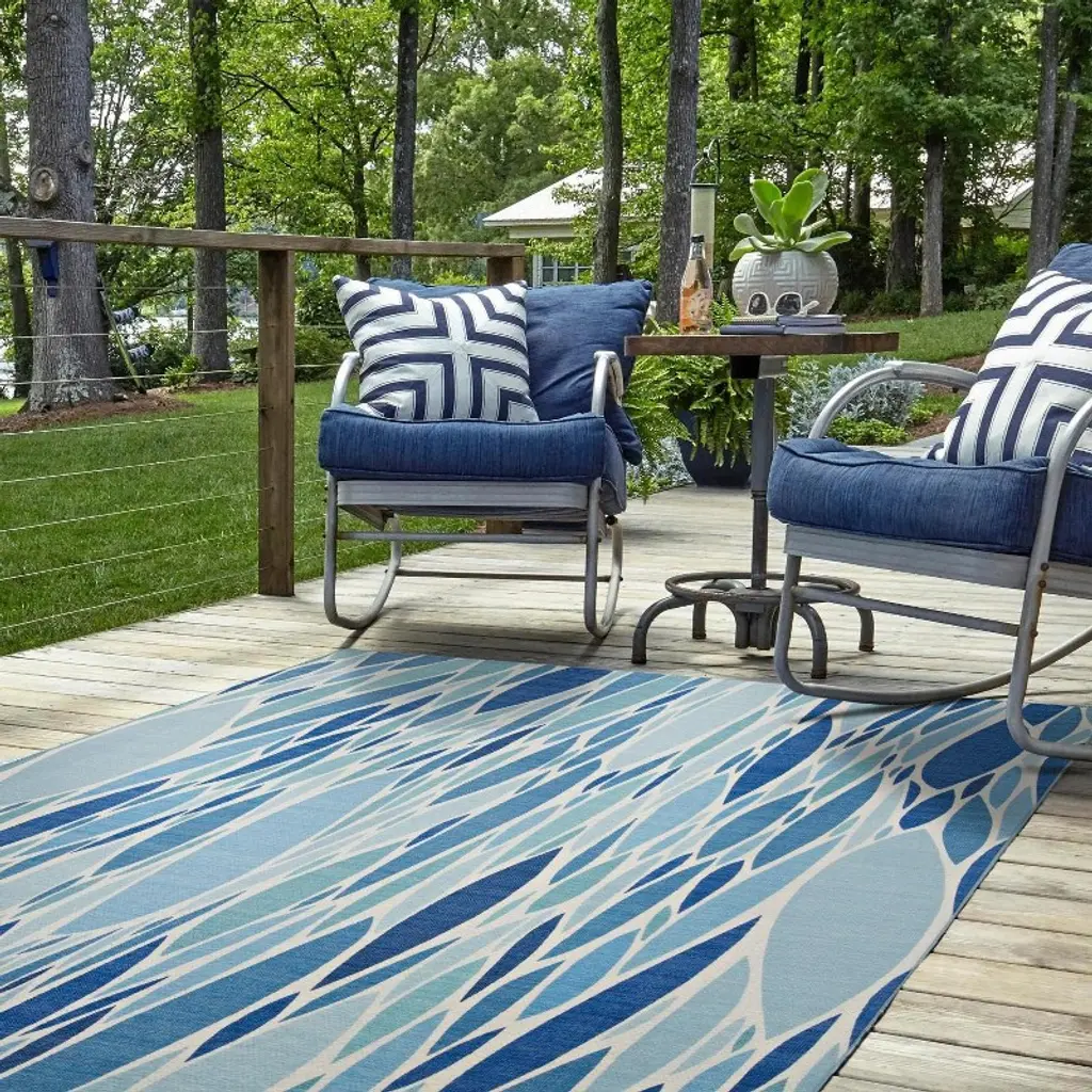 Homestock Outdoor Washable Pompano Blue & Ivory 5' X7', Machine Woven With Printed Designs, Coastal
