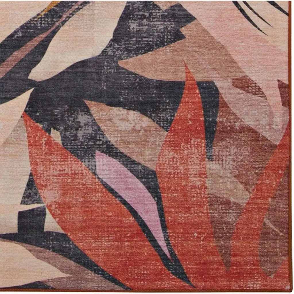 Homestock Outdoor Washable Seagrove Orange & Cream 2' X 3', Machine Woven With Printed Designs, Coastal