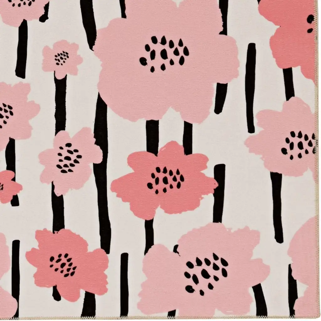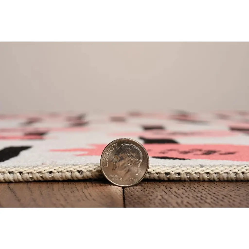 Homestock Washable Laurel Ivory/pink 2X8, Transitional, Machine Woven With Printed Designs