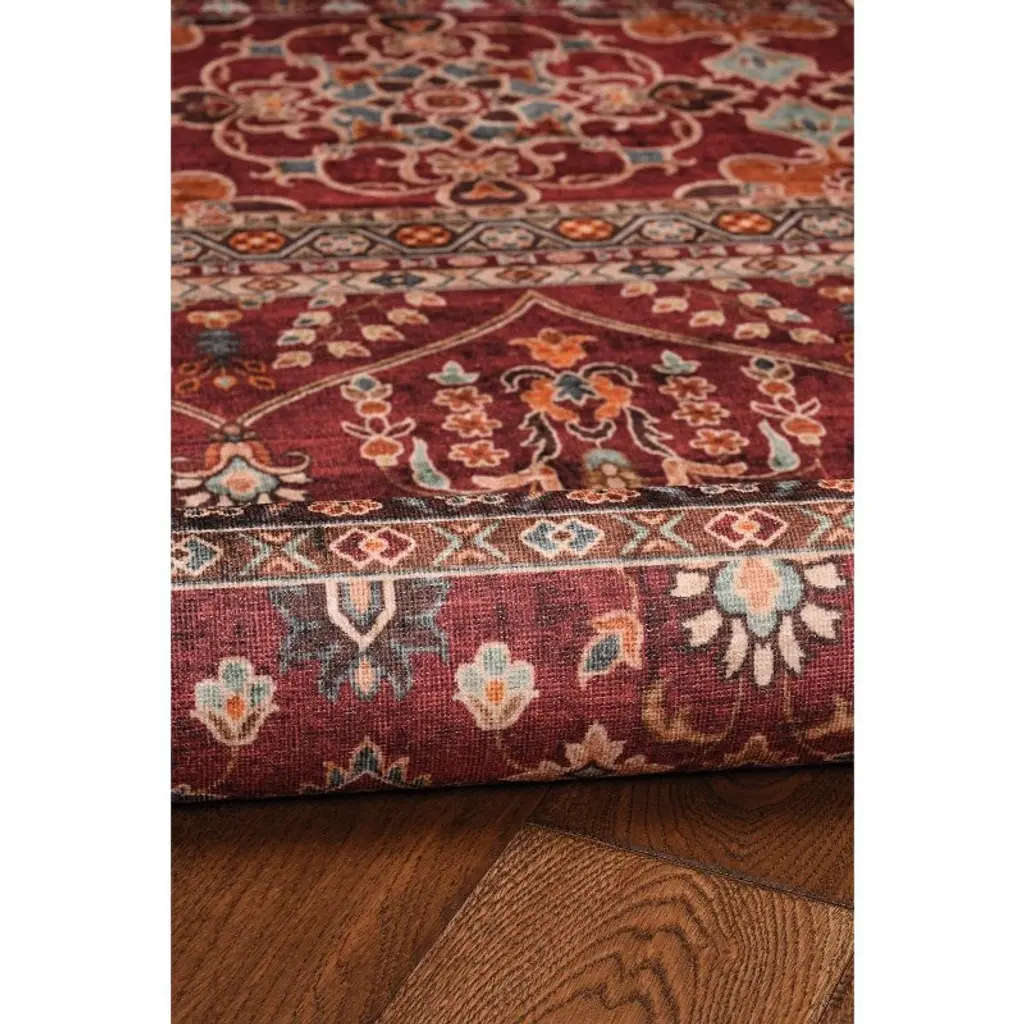 Homestock Washable Neil Garnet/ivory 2X8, Machine Woven With Printed Designs, Transitional