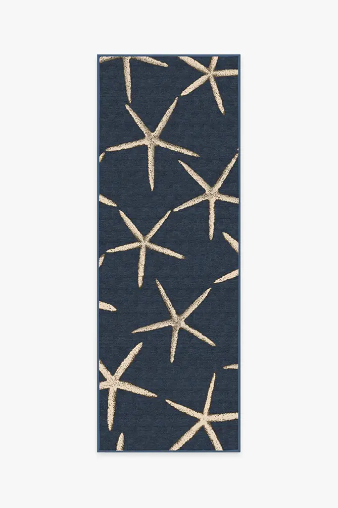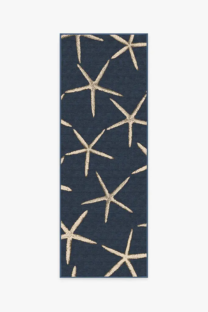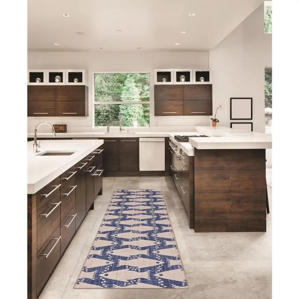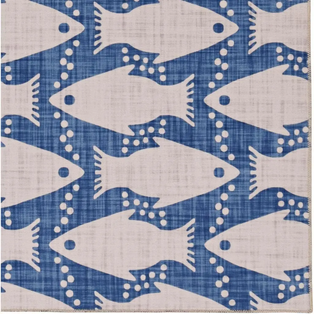 Homestock Washable Seabourne Ivory/blue 2X8, Transitional, Machine Woven With Printed Designs