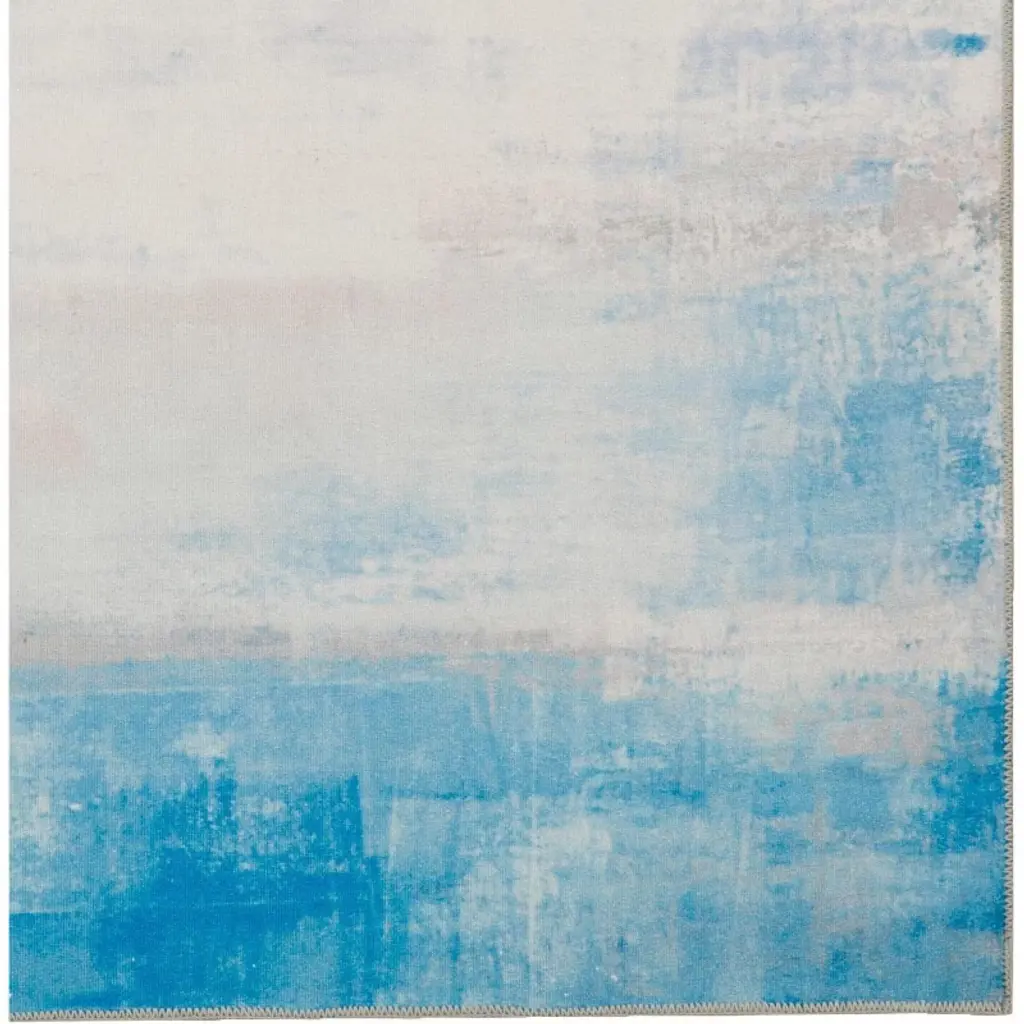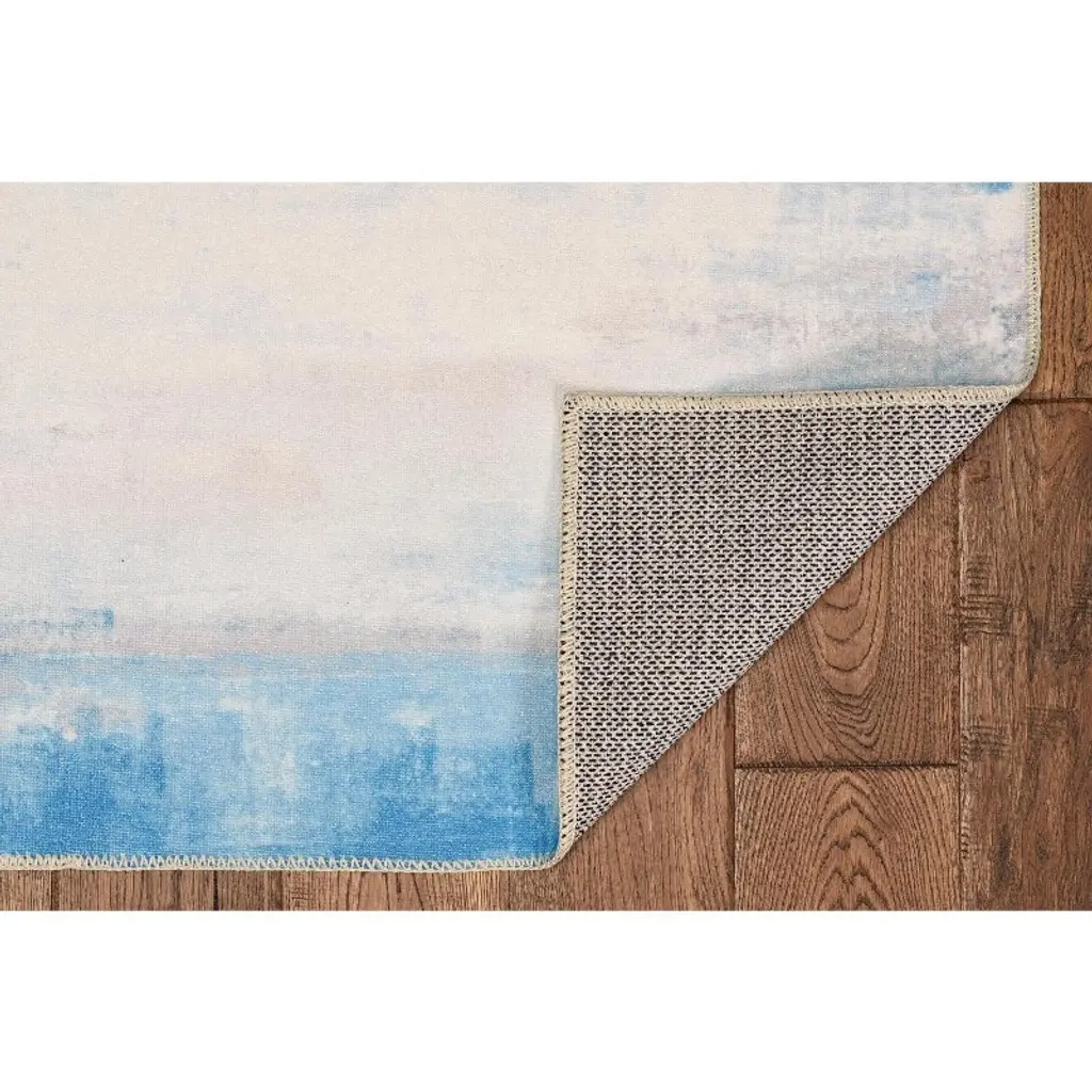 Homestock Washable Tiana Ivory/blue 5X7, Machine Woven With Printed Designs, Transitional