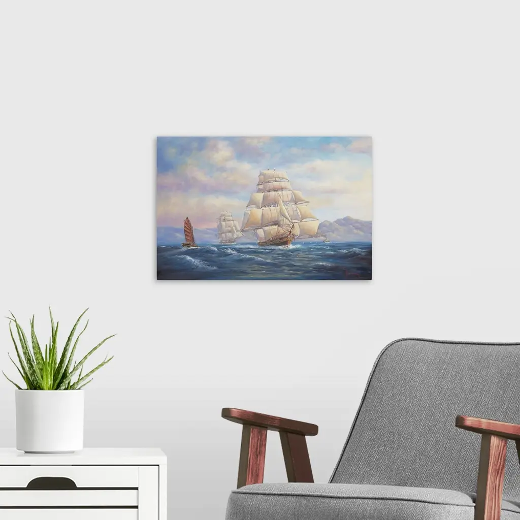 Contemporary painting of a ship sailing the open seas.
