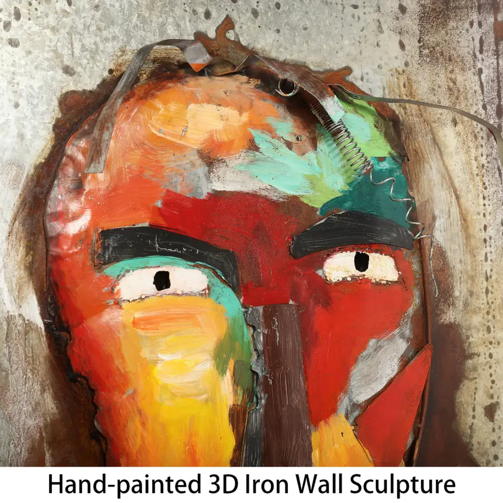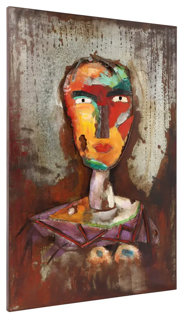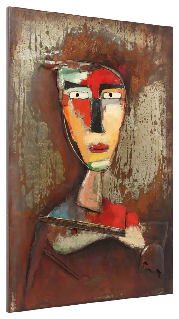 "Homme" Mixed Media Iron Hand Painted Faces Dimensional Wall Art