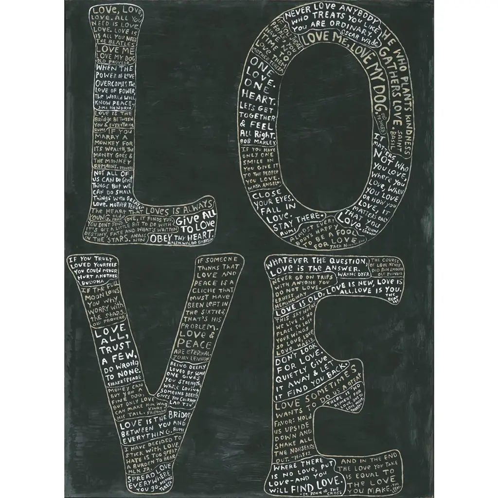 Sentimental phrases inspired by the Southern artist’s family life scroll across the entirety of two panels in a casual, loose, handwritten style. Each piece is hand assembled with hand painted embellishments on the frame. Choose from two sizes.