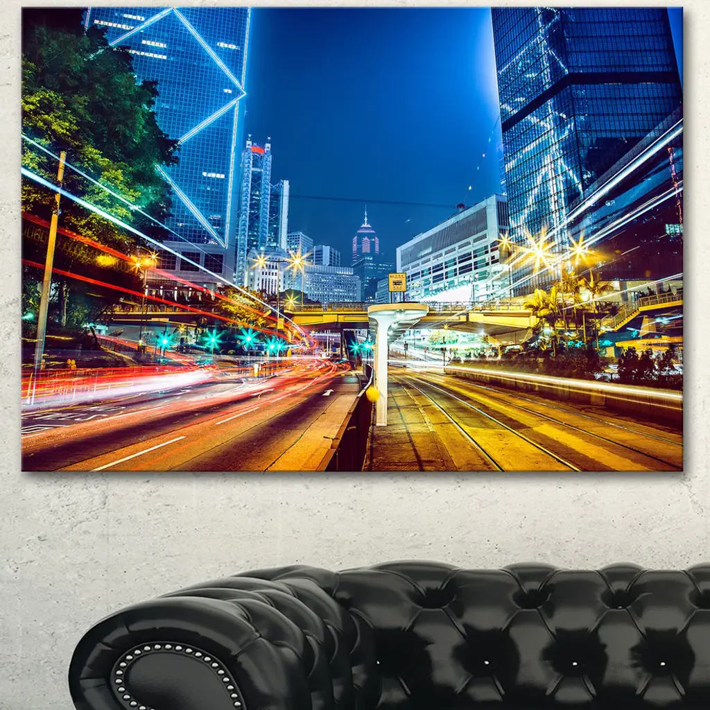 Hong Kong City Night Scene, Large Cityscape Art Print On Canvas, 60"x28"