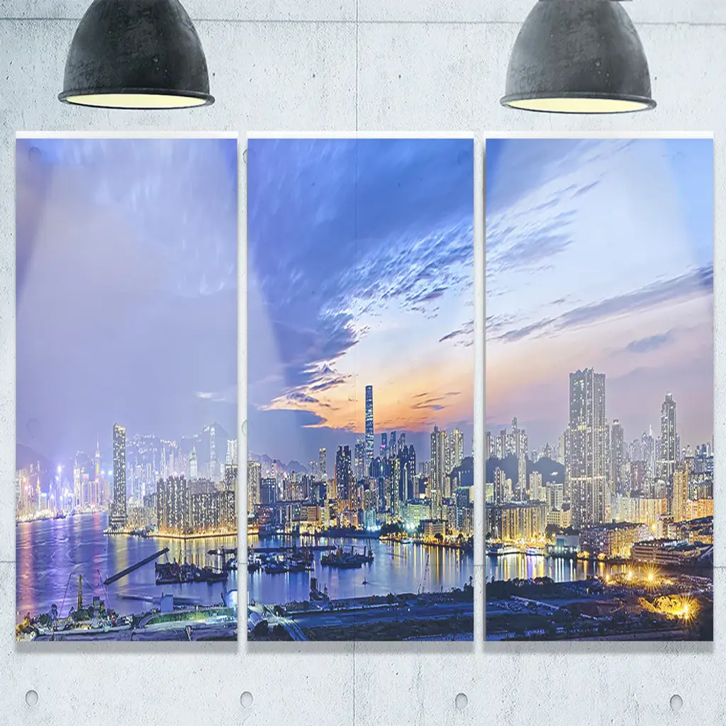 "Hong Kong City Sunset Panorama" Metal Wall Art, 3 Panels, 36"x28"