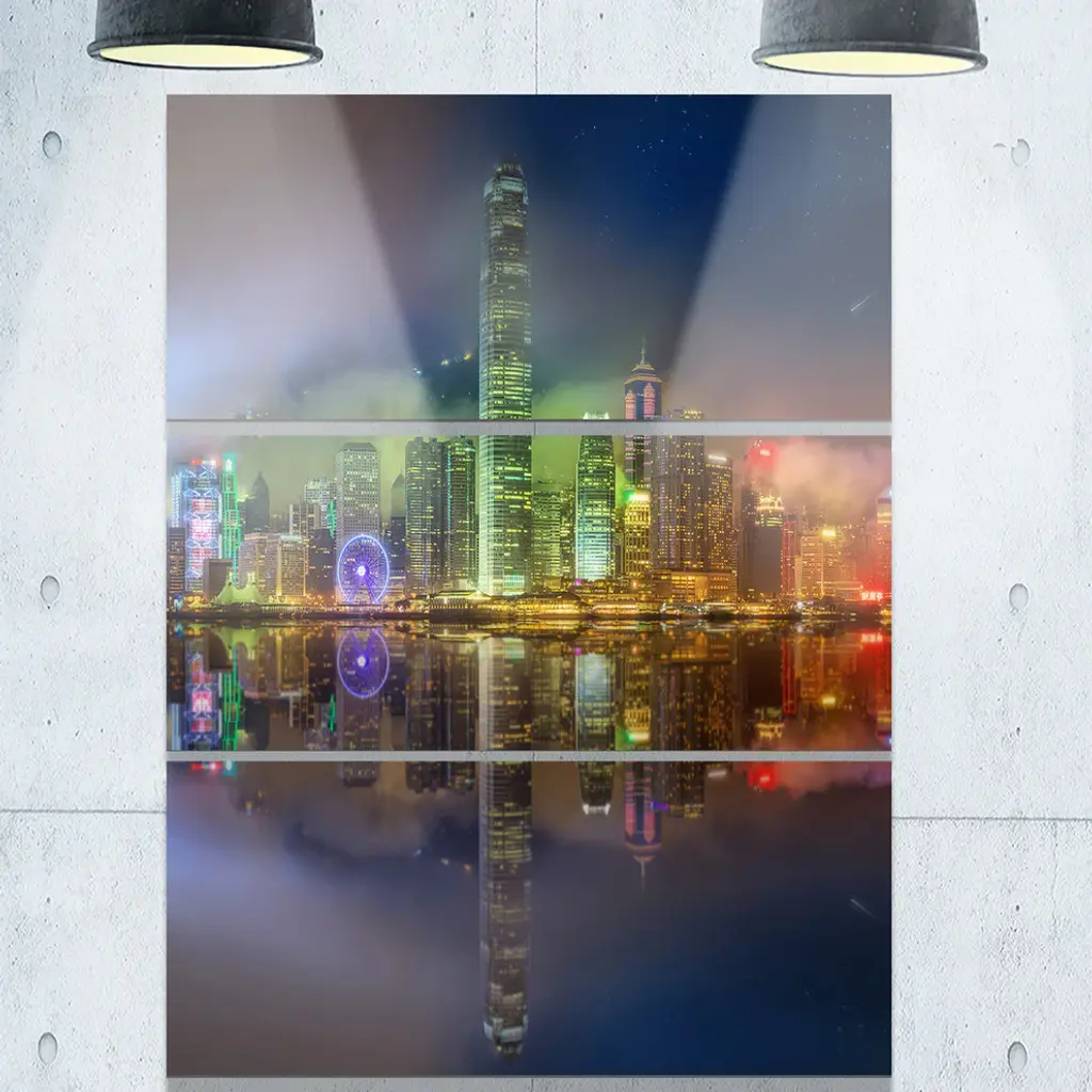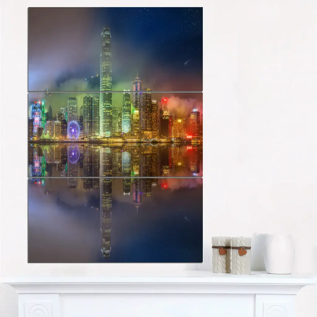 "Hong Kong Panoramic View" Photo Metal Wall Art, 3 Panels, 28"x36"
