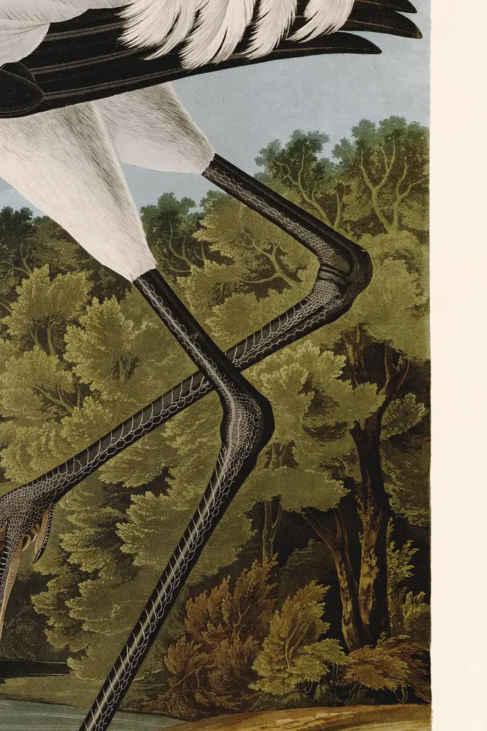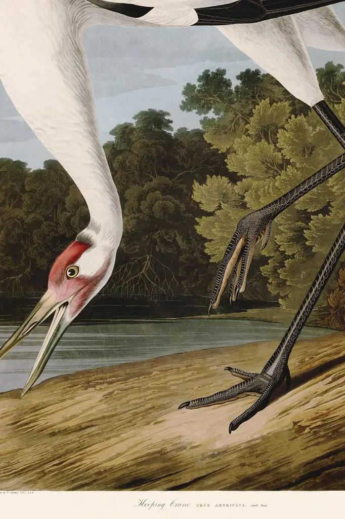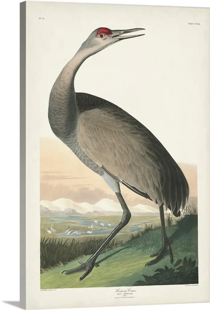 Giclee reproduction Hooping Crane from John J. Audubon's The Birds of North America Double Elephant Folio. Framed in a beautiful black wood moulding with acrylic glazing. The moulding is a real wood veneer moulding the is hand finished and made in Italy. Framed using archival acid free foam core and acrylic this giclee reproduction is the highest quality. The back has a dust cover and hooks and wire to easily hang on the wall. Please note that colors on your computer screen with vary slightly from what it actually is. The image is printed on acid free cotton rag paper with archival inks that have a light-fastness of over 140 years so it will not fade for a very, very long time. This has been produced and framed just outside of Atlanta Georgia in the USA.