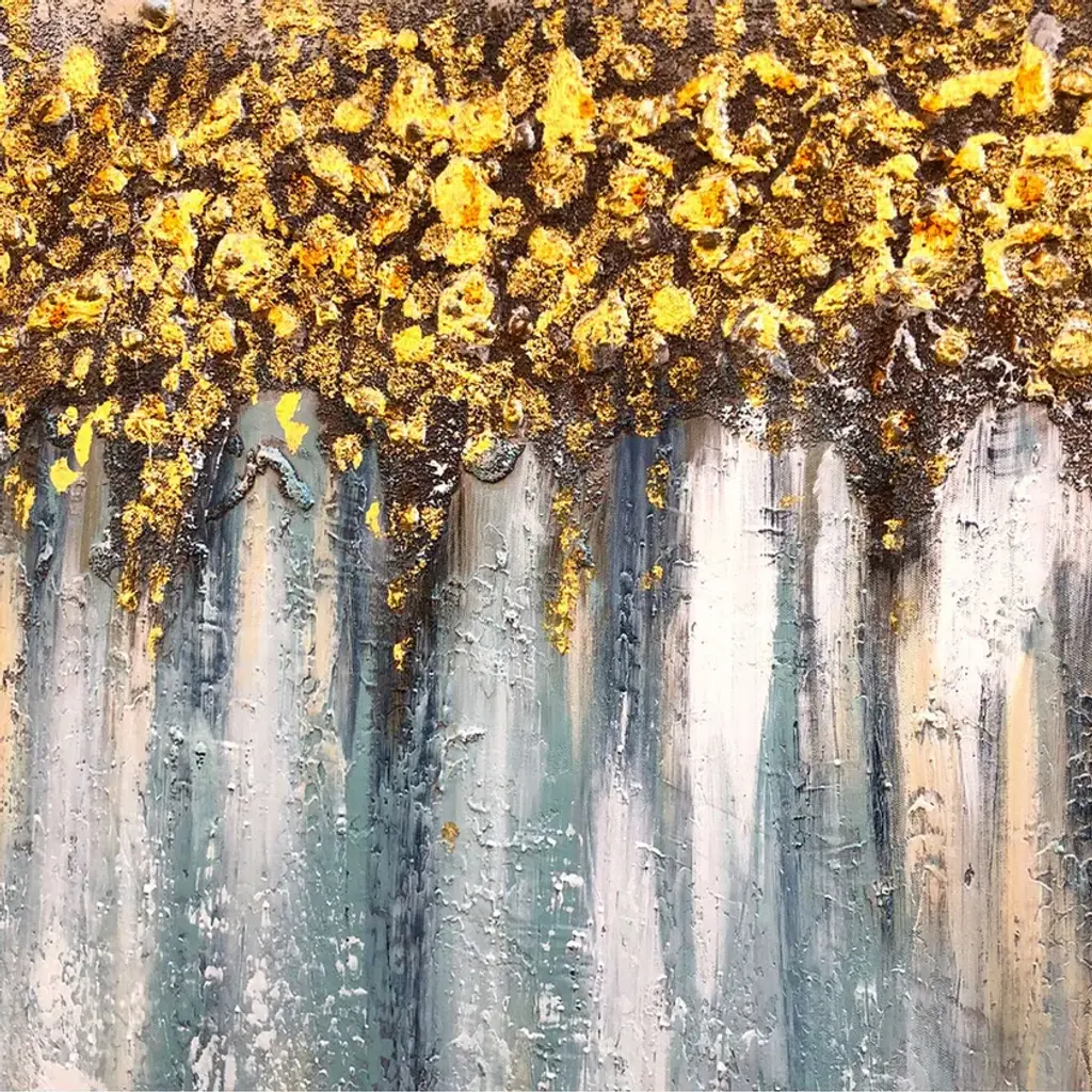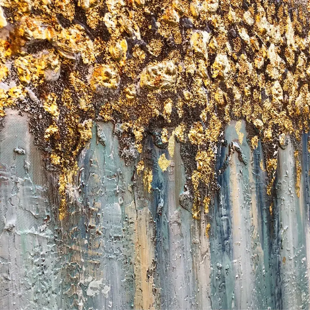 Horizon is an abstract hand-painted painting on canvas. The composition is meant to visually recall the sea, with its waves and reflections. The use of metallic gold adds a dynamic and textural element to the artwork. With a wooden inner frame and painted edges, the painting is ready to hang.The AGAVE Quadri collection represents the excellence of contemporary art applied to the world of interior design. Each piece, hand-painted with artisanal techniques by the finest artists in collaboration with the Italian company AGAVE, combines abstract, natural, and figurative elements to create unique and refined works. These paintings transform spaces into environments of great elegance and character, perfect for interior design projects that require a distinctive and artistic touch.