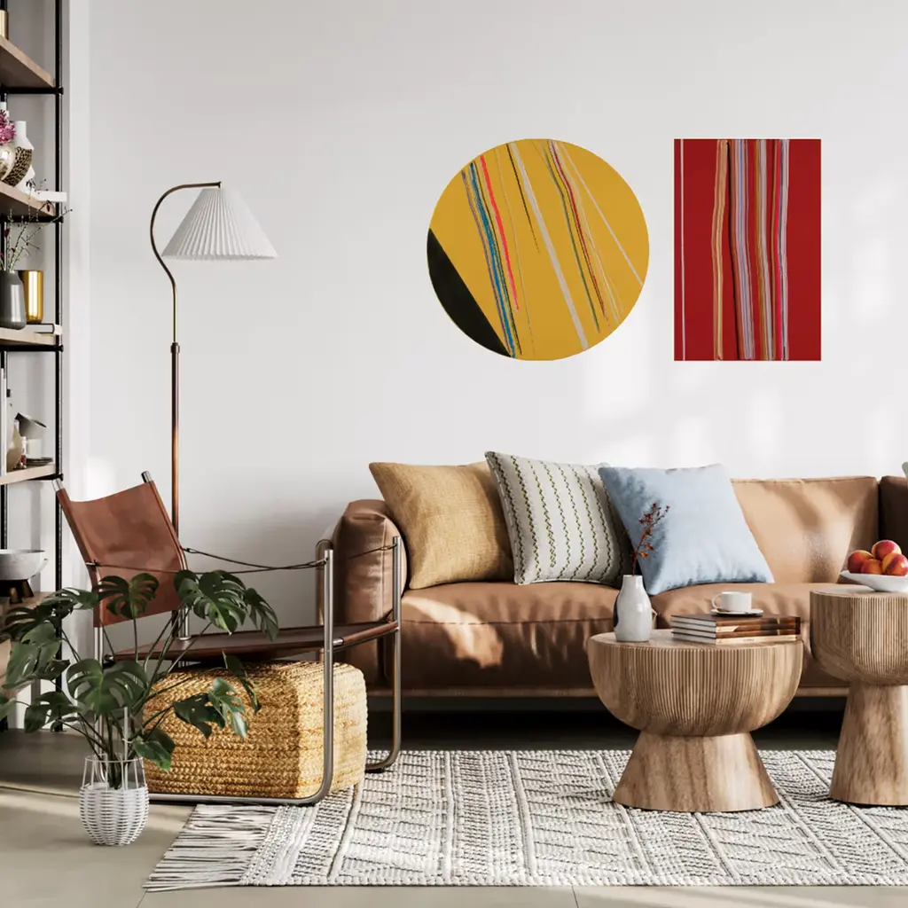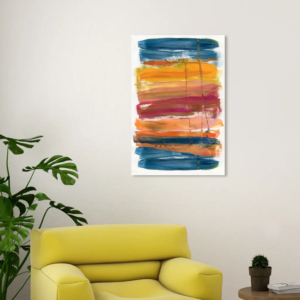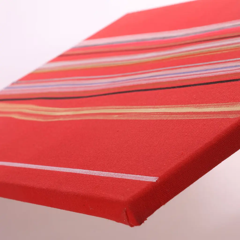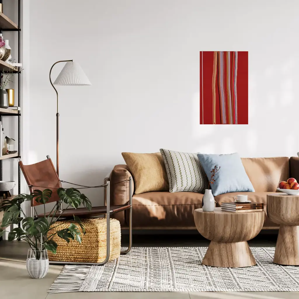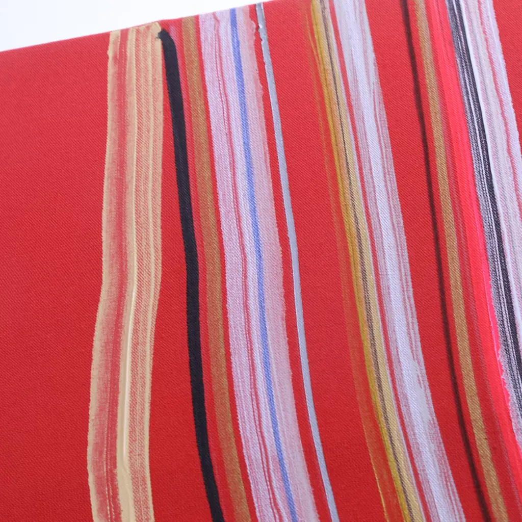 Experience the captivating allure of the Horizon Lumen painting, a striking piece that transforms any space with its vibrant hues. This artwork features a series of luminous, radiant lines that dance across a rich red background, creating a dynamic interplay of color and light. The design reflects an elegant balance between simplicity and complexity, evoking feelings of energy and creativity. The painting is an embodiment of harmonious expression, perfect for modern interiors, adding a touch of sophistication and warmth. One-of-a-kind piece.