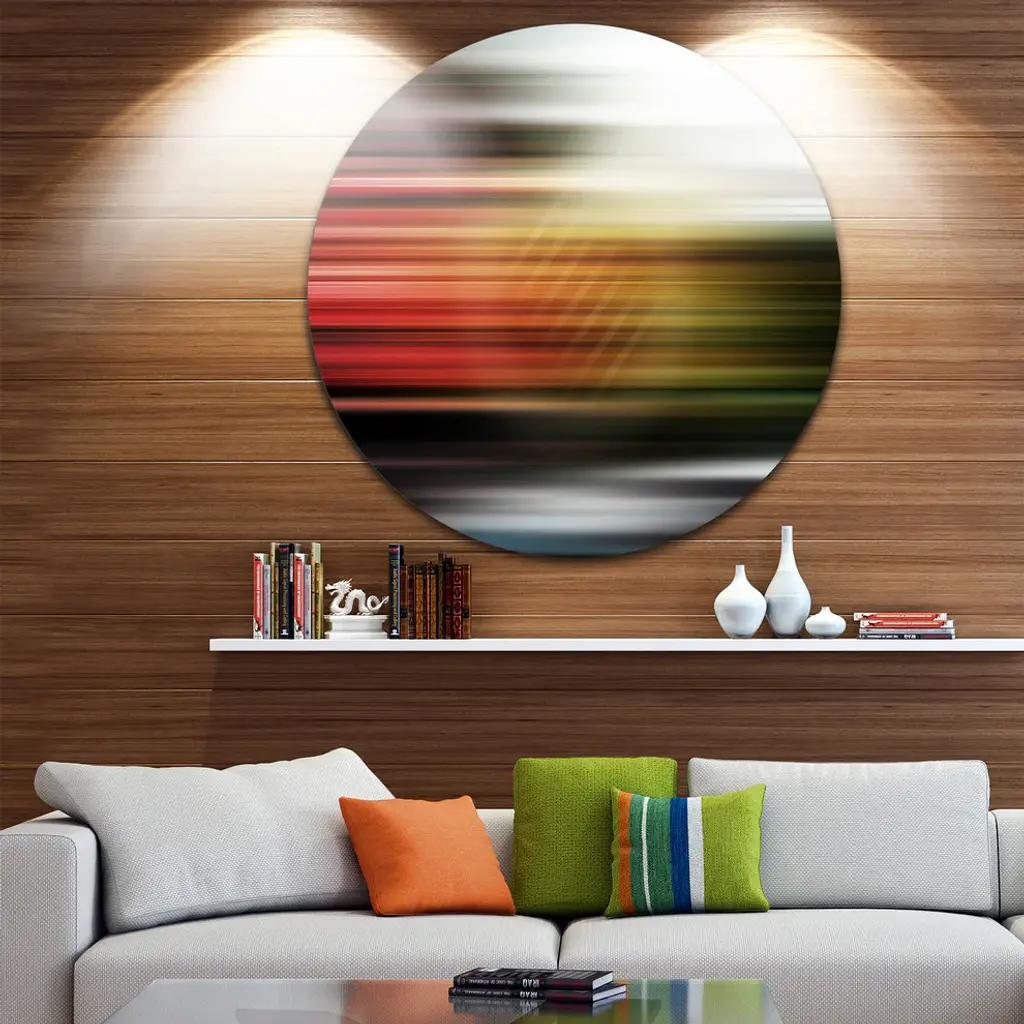 Bring Contemporary Abstraction to your home with this large Circle Metal wall art. This Horizontal Lights Metal Artwork makes it the focal point of any room or office. - White Gloss Coating ensures colors are extra vibrant with light reflection.- Aluminum grade Sheet Metal with 1 inch mounting frame on the back giving the illusion that the artwork is floating on the wall..- Mounting Brackets are included along with instructions.- High Quality Digital images are created directly into a glossy aluminum panel producing a stunning and captivating print into the glossy finish of the metal.- Water, Fire and Scratch resistant HD Aluminum panels.- Looks better than any photo paper and guaranteed to last at least 20 years- Easy to clean with a microfiber cloth. Colors are far superior to regular Canvas Art. - Easy to Hang