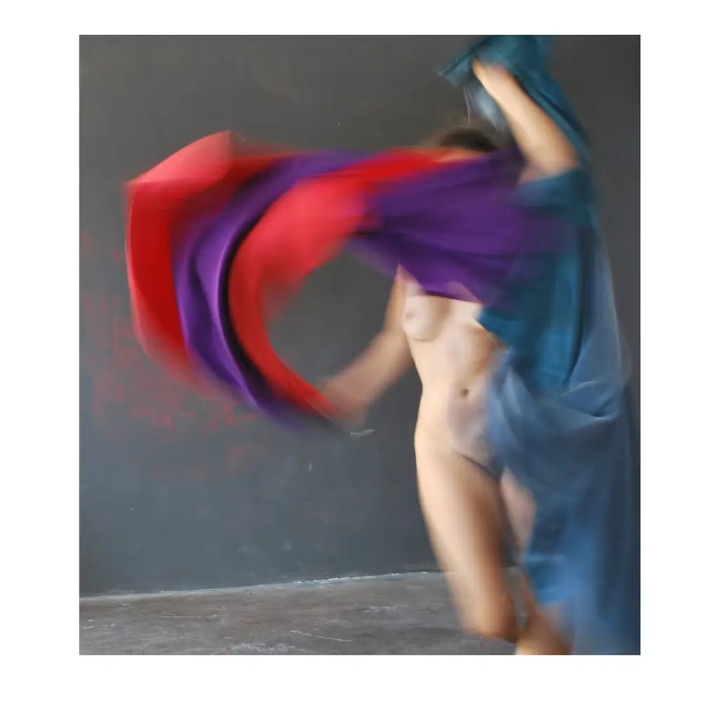 Named after the Latin saying for a fear of leaving empty spaces, this extraordinary self-portrait was taken in 2020 by artist Ilaria Facci. Printed on fine art photographic paper, it displays a vibrant, blurred ensemble of hues, rendered in a hypnotizing and dynamic movement that engulfs the striking visage in focus. Available in three copies, it can be customized in other dimensions upon request.