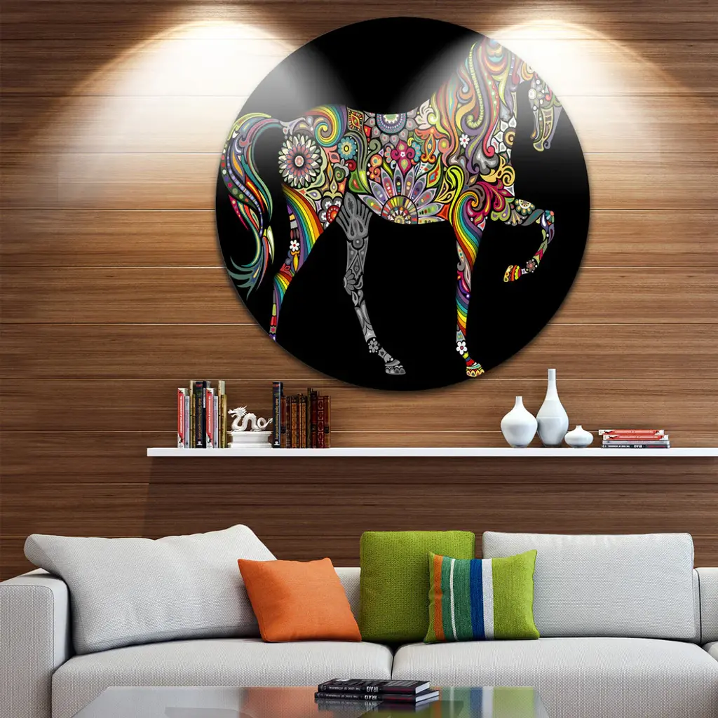 Horse And Rainbow, Animal Digital Art Disc Metal Artwork, 23"