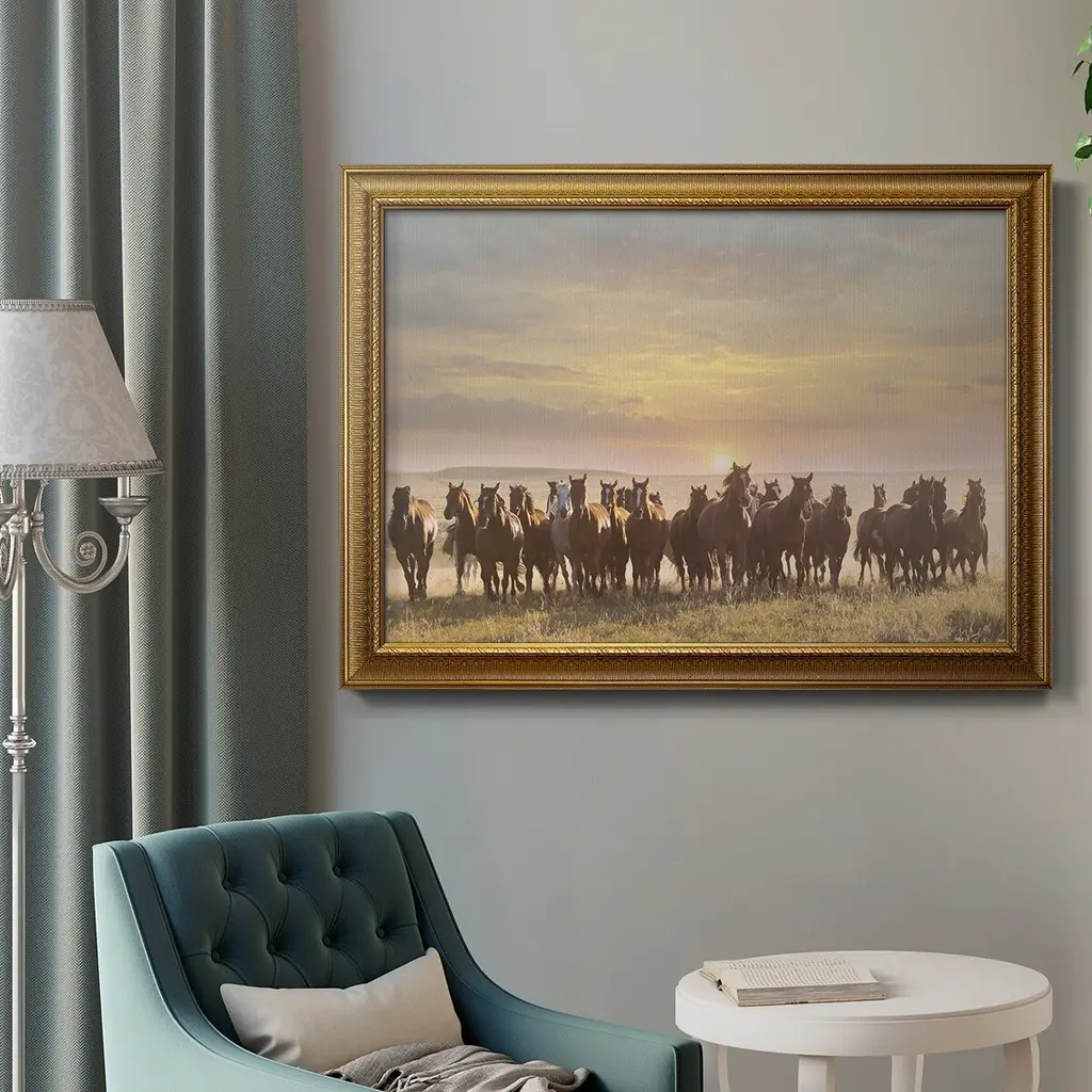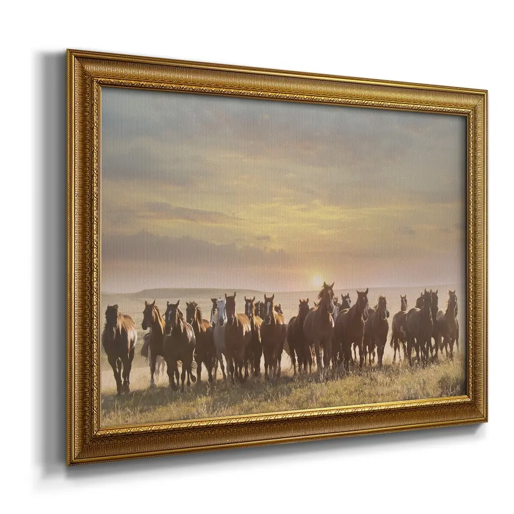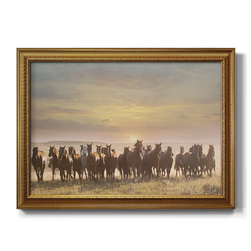 Horse Motion I Premium Framed Canvas- Ready to Hang A Premium Framed Canvas created to last. Framed in distressed wood and available in an array of sizes and colors Featuring a beveled a solid wood stretcher bar, each piece comes ready to hand 3 SIZES AVAILABLE 16''X20'' - Overall Size 18'X27'' - Overall Size 24''x36'' - Overall Size Each piece is made to order. Each piece comes with hanging hardware. Made in the USA Ready to Hang Giclee Paper Print Acrylic Glass Beveled Matt Board