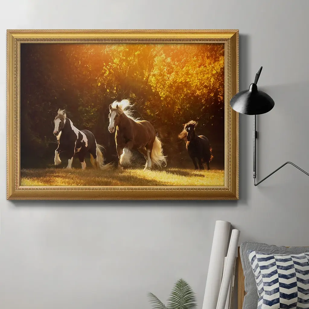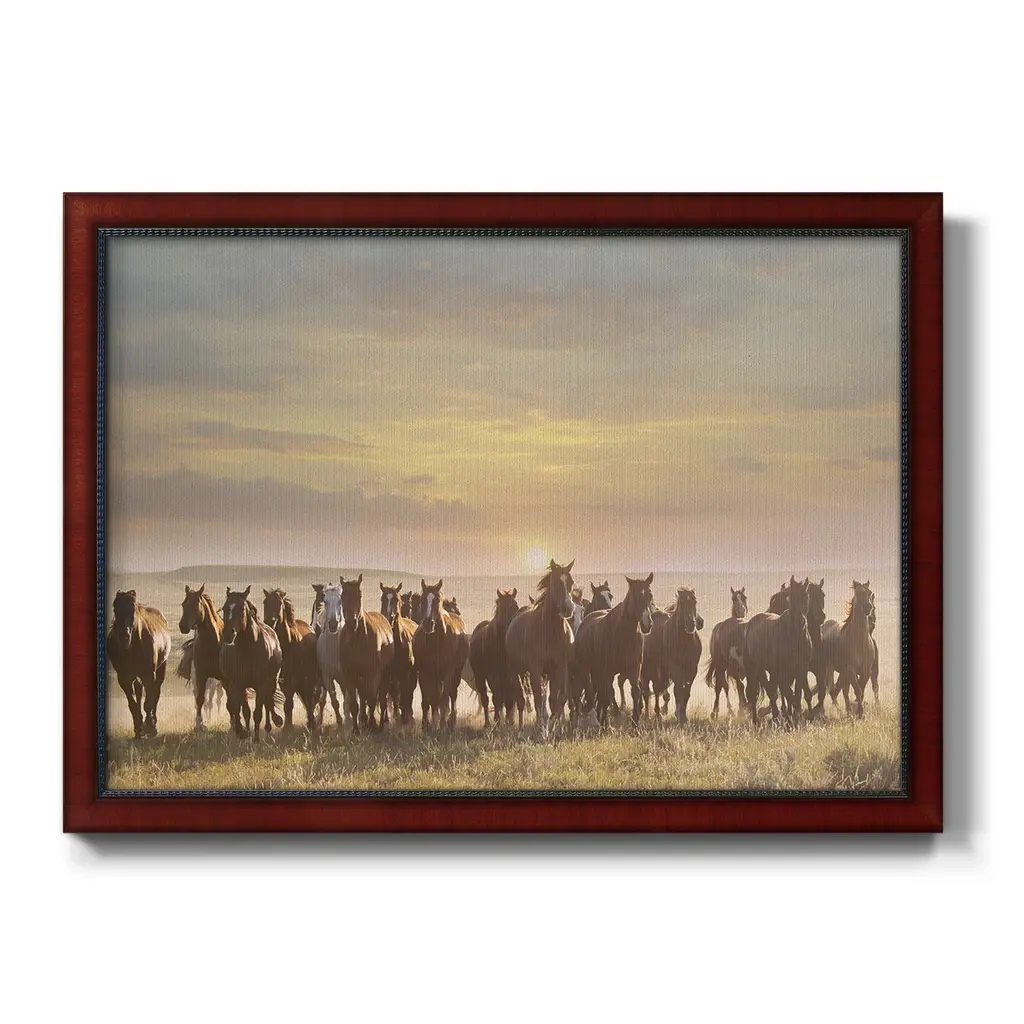 Horse Motion I Premium Framed Canvas- Ready to Hang A Premium Framed Canvas created to last. Framed in distressed wood and available in an array of sizes and colors Featuring a beveled a solid wood stretcher bar, each piece comes ready to hand 3 SIZES AVAILABLE 16''X20'' - Overall Size 18'X27'' - Overall Size 24''x36'' - Overall Size Each piece is made to order. Each piece comes with hanging hardware. Made in the USA Ready to Hang Giclee Paper Print Acrylic Glass Beveled Matt Board