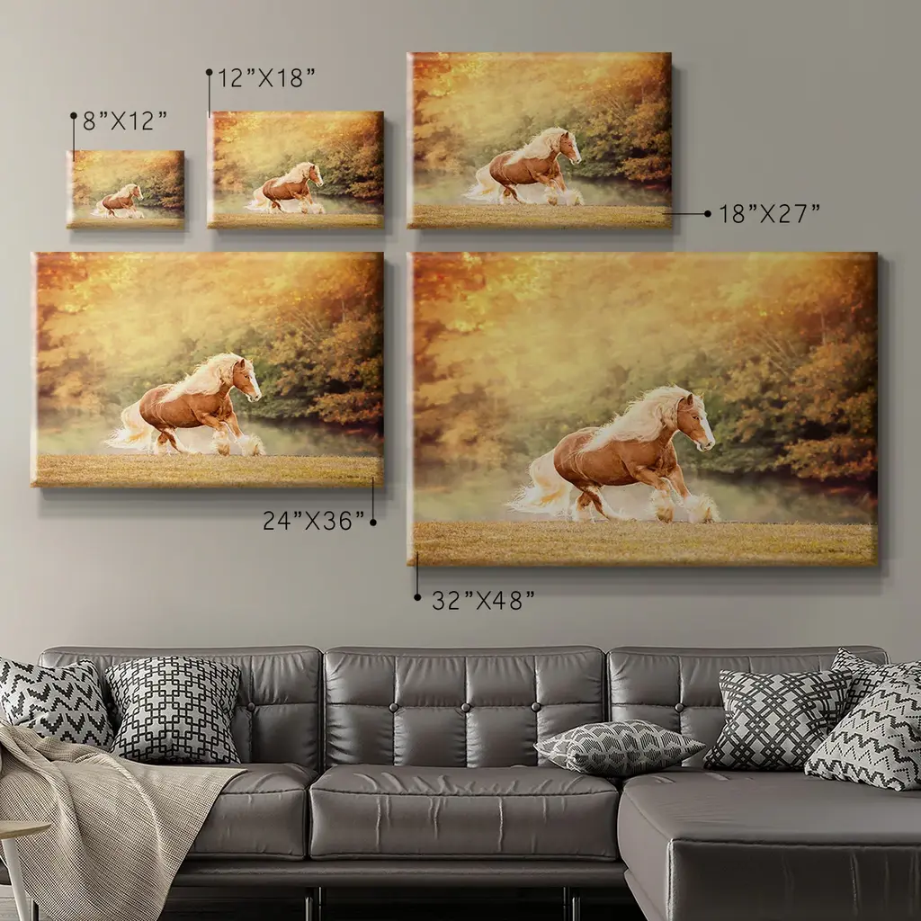 Horse Motion II Premium Gallery Wrapped Canvas - Ready to Hang A premium hand stretched gallery wrapped canvas print created to last. Featuring a beveled a solid wood stretcher bar, each piece comes ready to hand 6 SIZES AVAILABLE 8''X12'' - Overall Size 12''X18'' - Overall Size 18''X27'' - Overall Size 24''x36'' - Overall Size 32''x48'' - Overall Size 40''x60'' - Overall Size Each piece is made to order. Built to Last Each piece comes ready to hang Solid wood stretcher Fade and Water resistant Made domestically