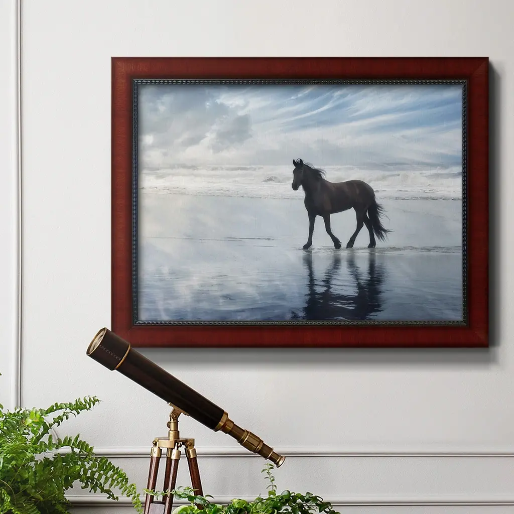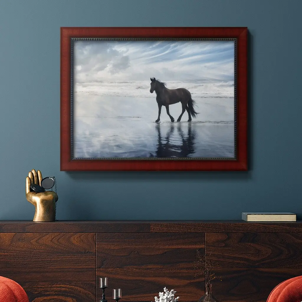 Horse Motion VI Premium Framed Canvas- Ready to Hang A Premium Framed Canvas created to last. Framed in distressed wood and available in an array of sizes and colors Featuring a beveled a solid wood stretcher bar, each piece comes ready to hand 3 SIZES AVAILABLE 16''X20'' - Overall Size 18'X27'' - Overall Size 24''x36'' - Overall Size Each piece is made to order. Each piece comes with hanging hardware. Made in the USA Ready to Hang Giclee Paper Print Acrylic Glass Beveled Matt Board