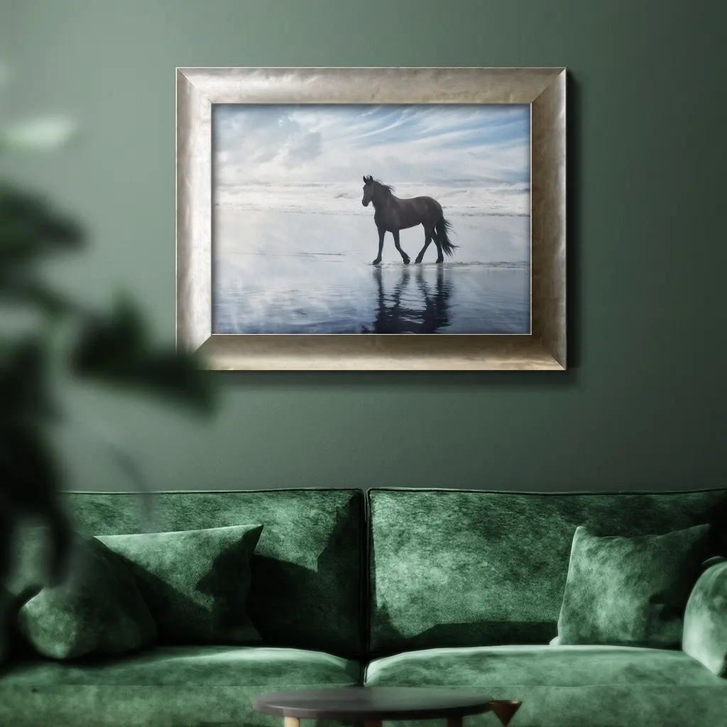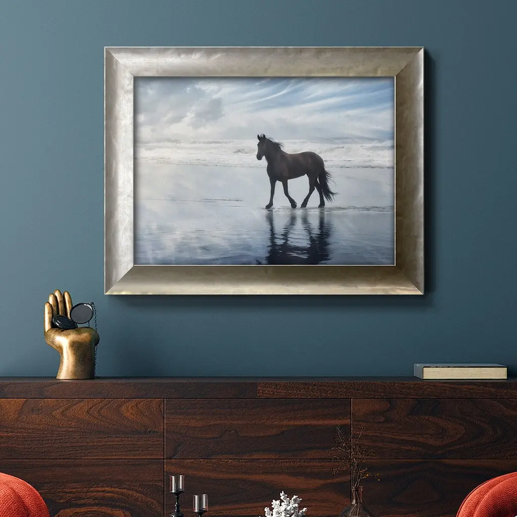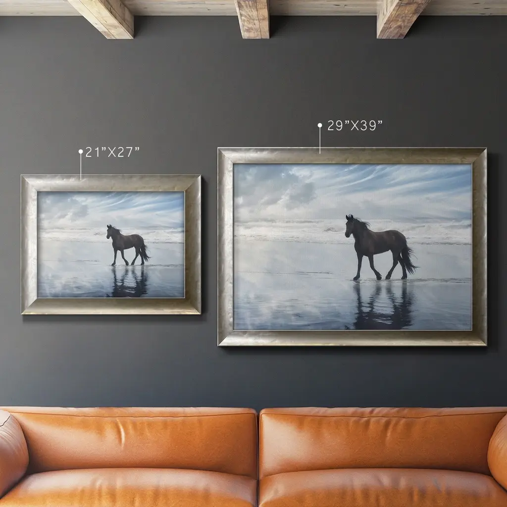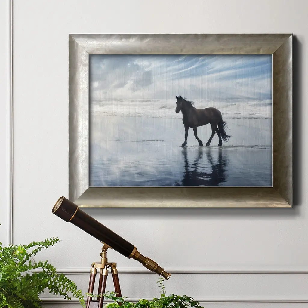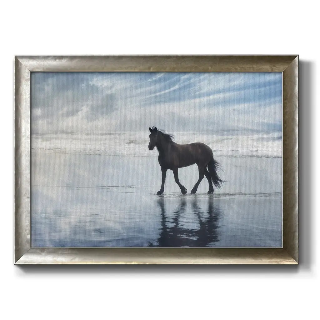 Horse Motion VI Premium Framed Canvas- Ready to Hang A Premium Framed Canvas created to last. Framed in distressed wood and available in an array of sizes and colors Featuring a beveled a solid wood stretcher bar, each piece comes ready to hand 3 SIZES AVAILABLE 16''X20'' - Overall Size 18'X27'' - Overall Size 24''x36'' - Overall Size Each piece is made to order. Each piece comes with hanging hardware. Made in the USA Ready to Hang Giclee Paper Print Acrylic Glass Beveled Matt Board