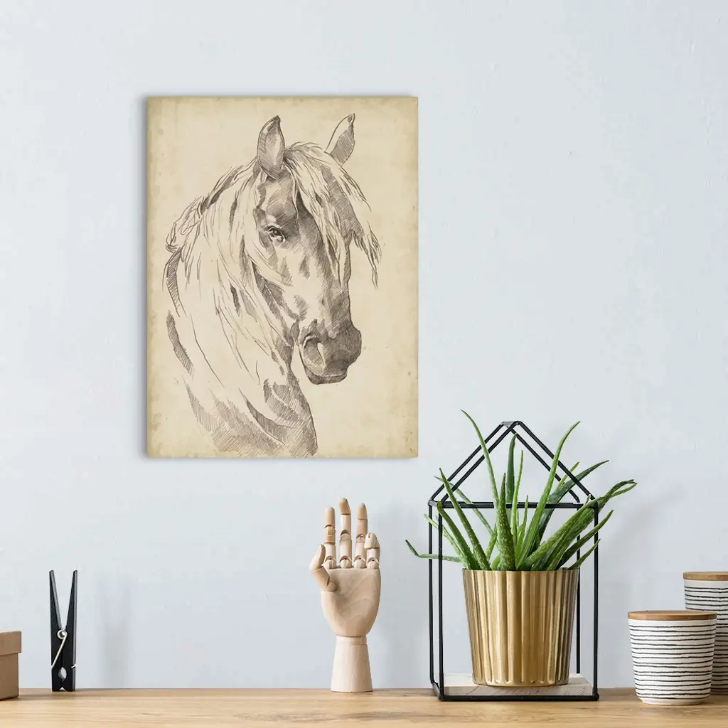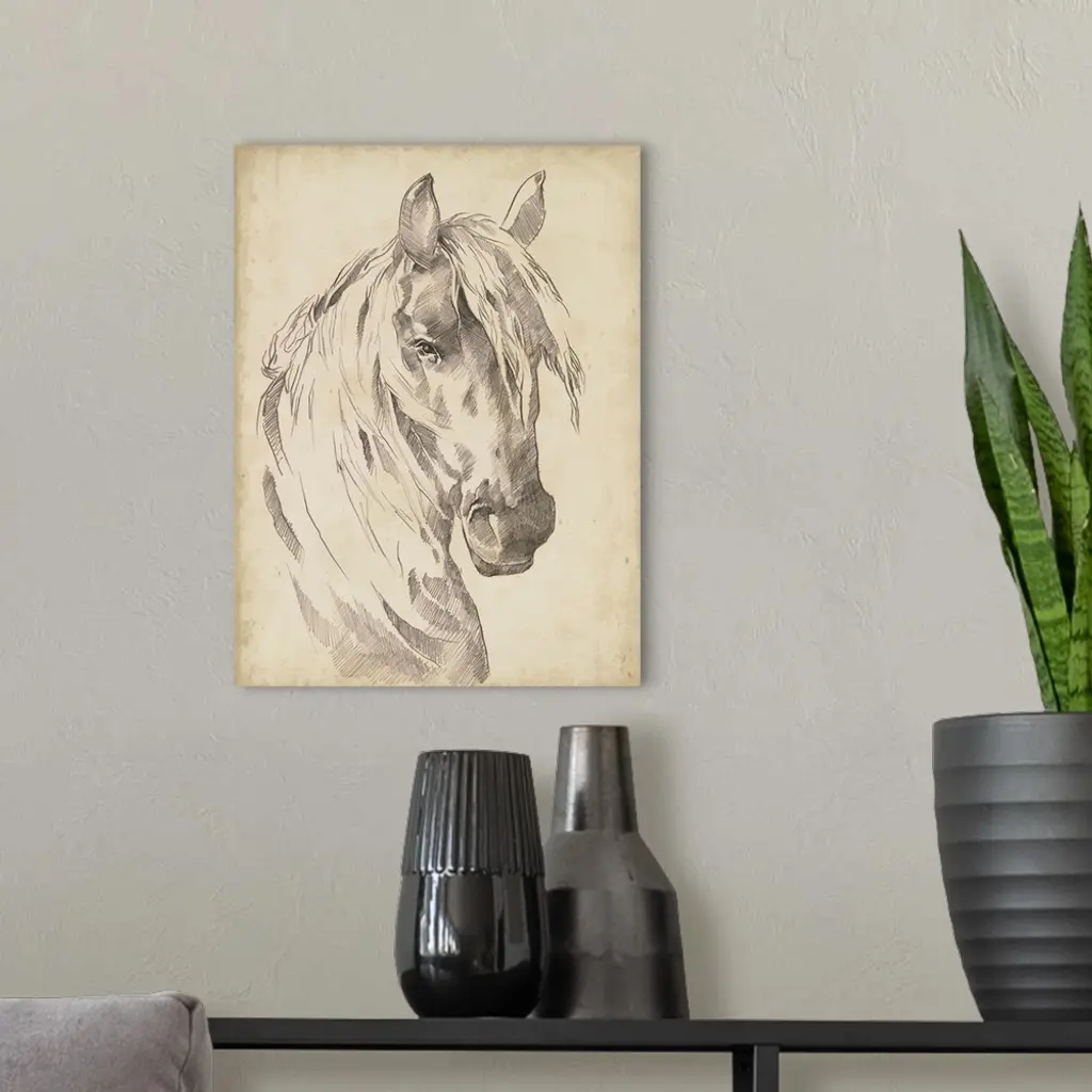 Horse Portrait Sketch I wall art for home and office decor. Discover canvas art prints, photos, mural, big canvas art and framed wall art in GreatBigCanvas.com's varied collections.