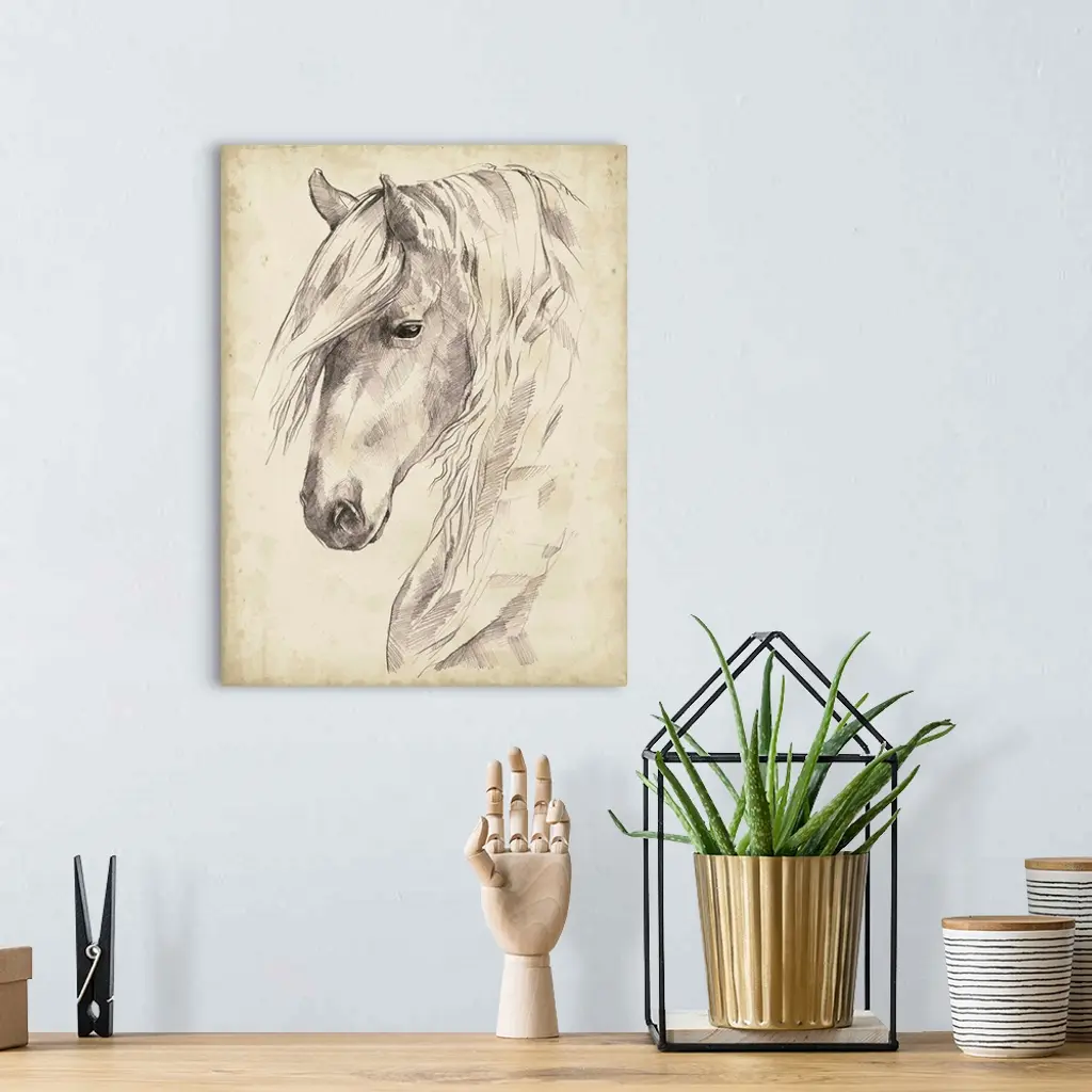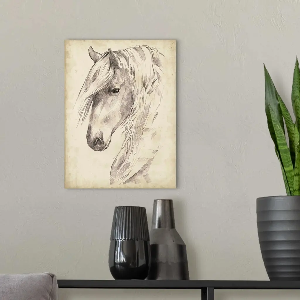 Horse Portrait Sketch II wall art for home and office decor. Discover canvas art prints, photos, mural, big canvas art and framed wall art in GreatBigCanvas.com's varied collections.