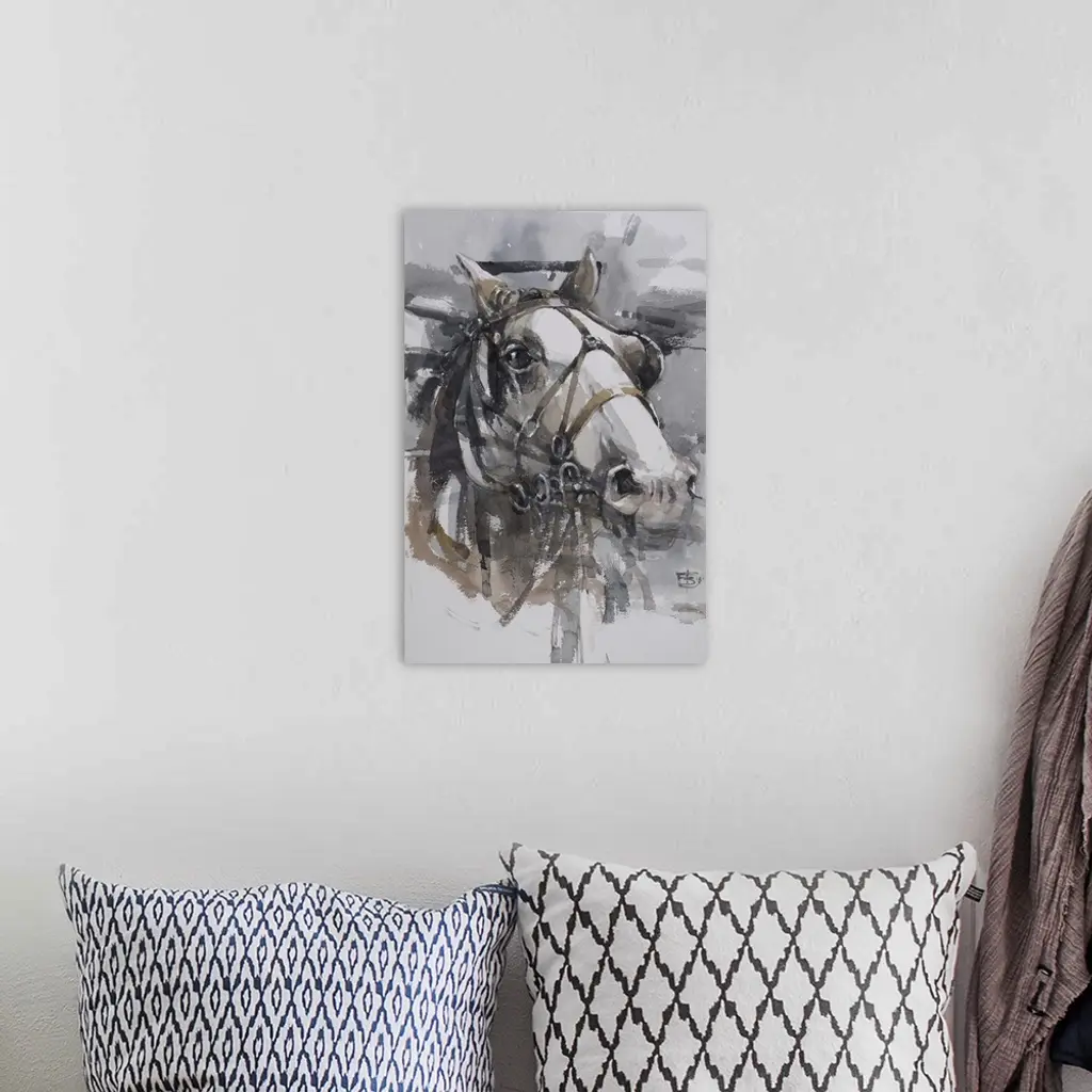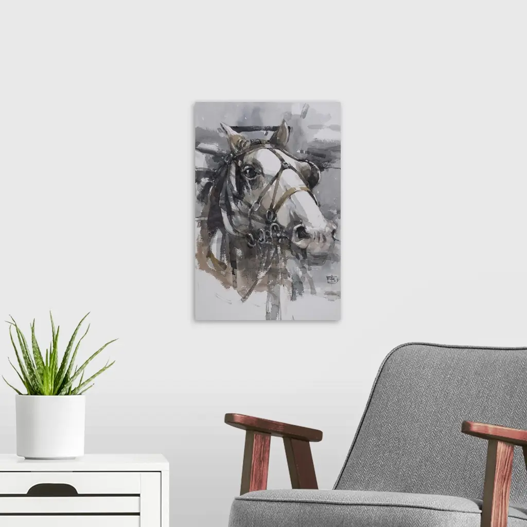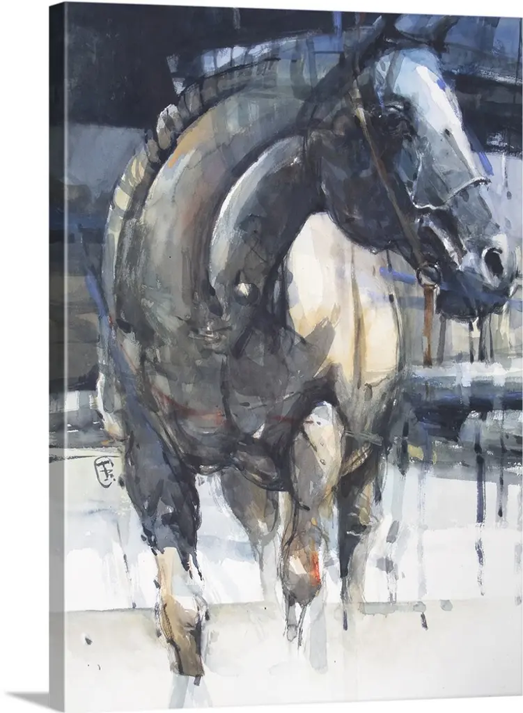 This pensive artwork features earthy tones and exhibits movement with energetic brush strokes.