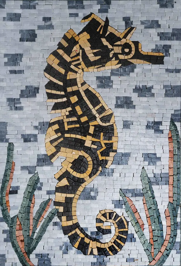 Introducing the exquisite Horsefish Mosaic Artwork, a true masterpiece that brings the enchanting beauty of the ocean right into your home. This stunning piece captures the essence of marine life with its vibrant yellow and striking black colors, creating a visual delight that will enhance any decor.The Horsefish Mosaic Artwork is meticulously crafted, showcasing intricate details that make each piece unique. The vibrant yellows and deep blacks harmonize beautifully, creating a captivating focal point that draws the eye and sparks conversations. Whether you're an ocean lover, an art enthusiast, or simply looking to add a distinctive touch to your space, this artwork is the perfect choice.Imagine it displayed in your living room, study, or hallway, serving not only as an eye-catching decoration but also as an inspiring reminder of the wonders of the sea. The unique design of the horsefish, combined with the craftsmanship of mosaic art, makes this piece a standout addition to any collection.Perfect for gifting or as a personal treasure, the Horsefish Mosaic Artwork is versatile enough to complement both modern and traditional interiors. Elevate your home decor with this remarkable piece and let the ocean's majesty wash over your space. Don't miss the opportunity to own this conversation starter that will leave your guests in awe and admiration. Bring home the Horsefish Mosaic Artwork today and dive into a world of beauty and artistry!