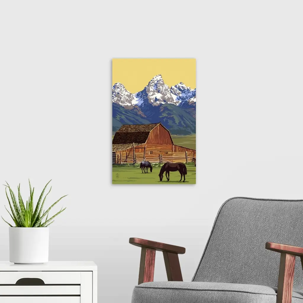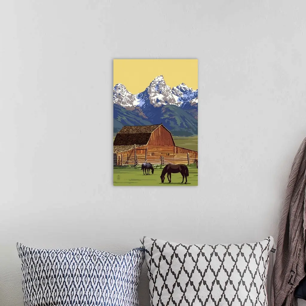 Horses and Barn with Mountains: Retro Poster Art wall art for home and office decor. Discover canvas art prints, photos, mural, big canvas art and framed wall art in GreatBigCanvas.com's varied collections.