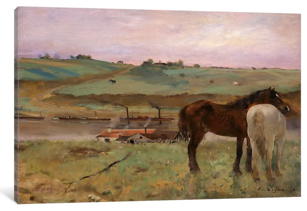 "Horses In A Meadow, 1871" By Edgar Degas, 40x26x1.5"