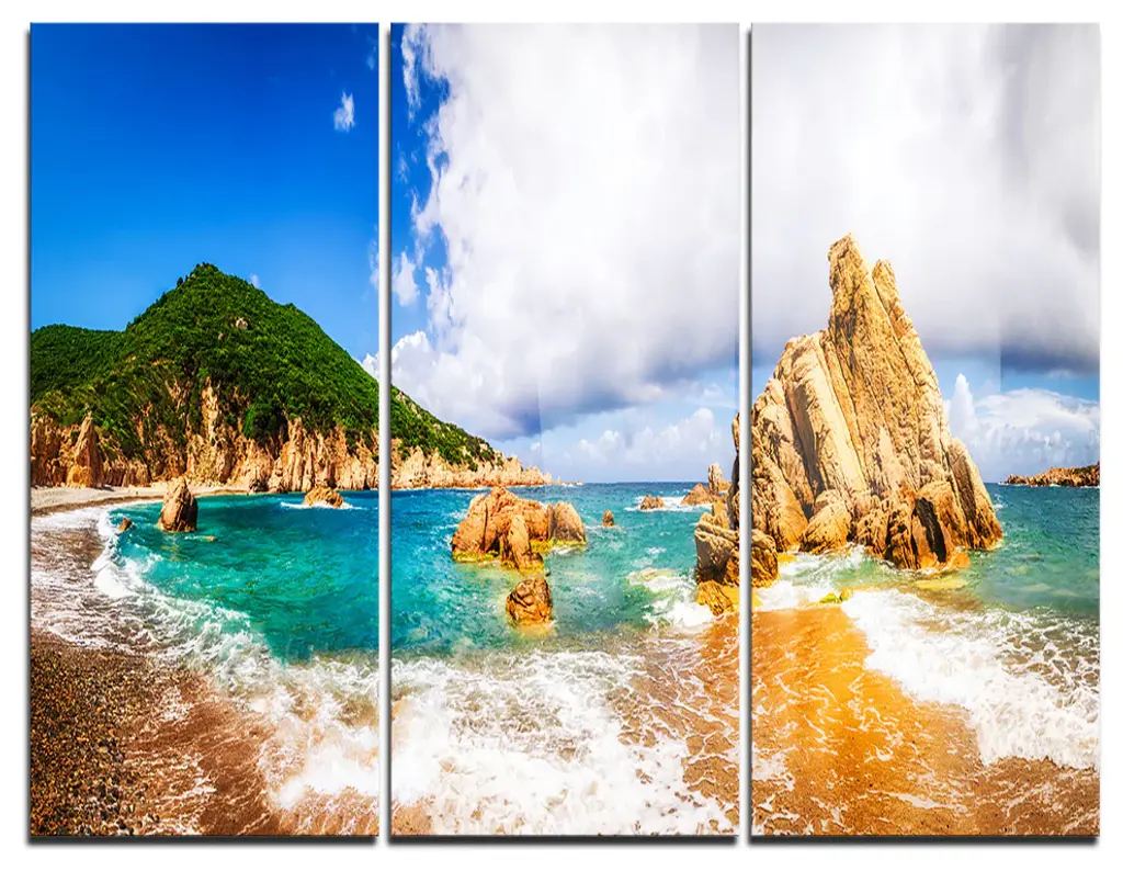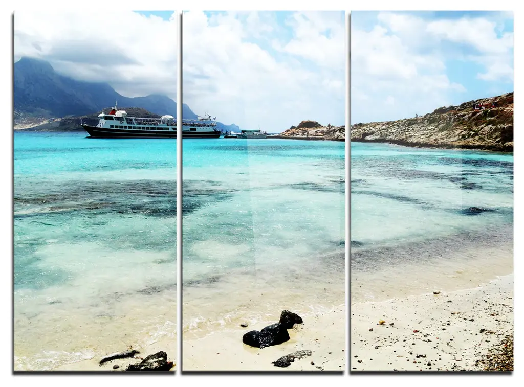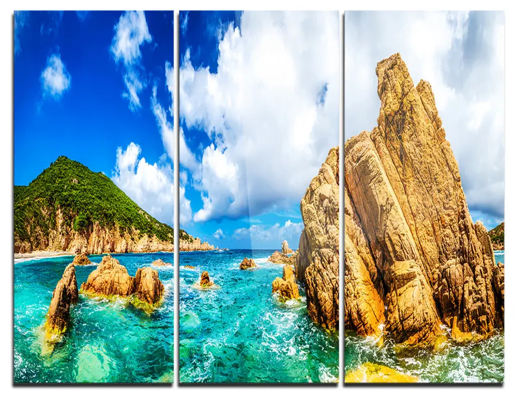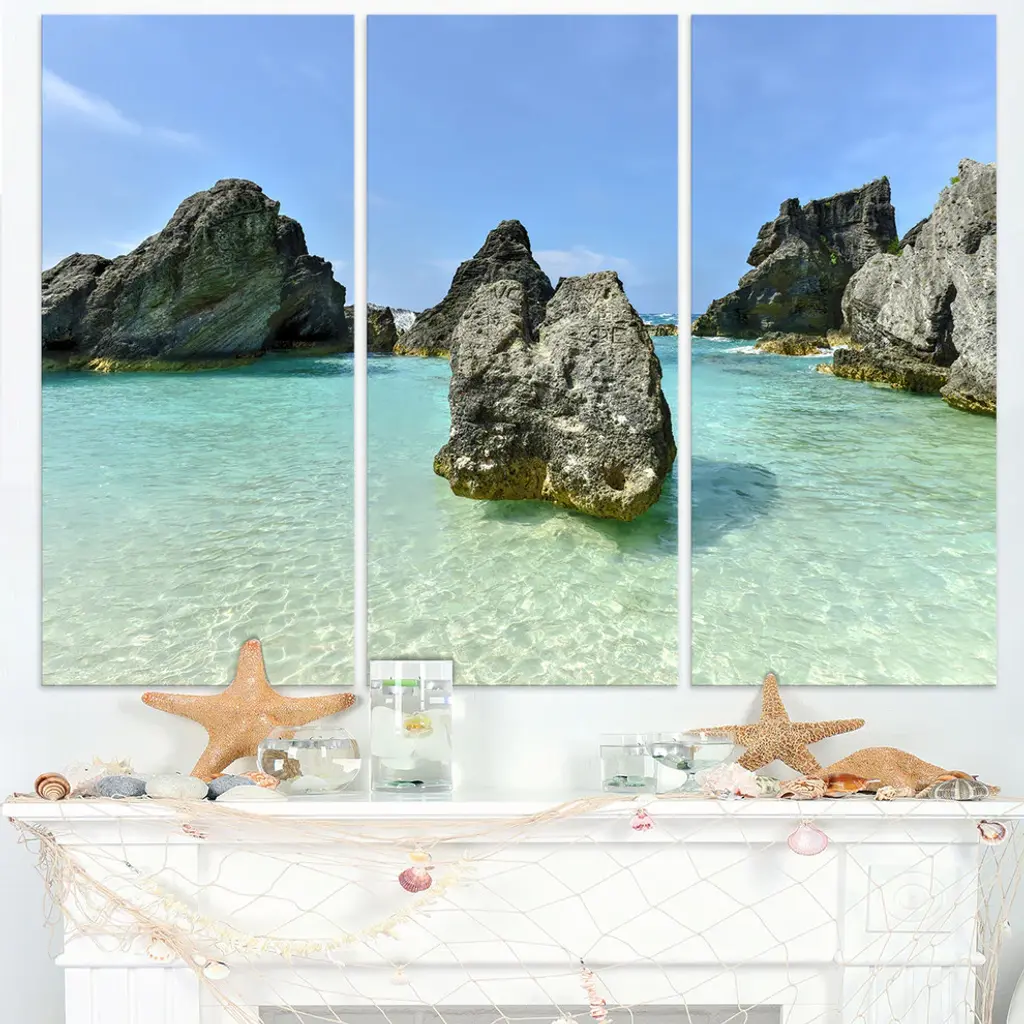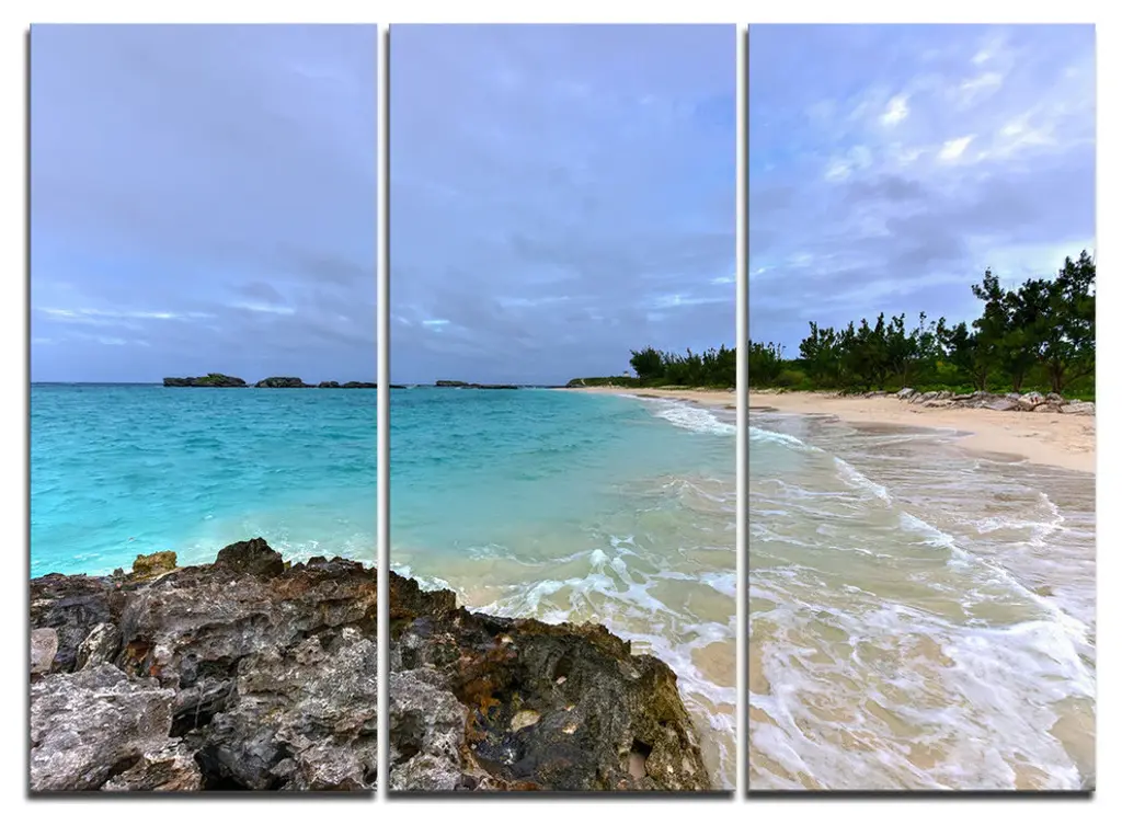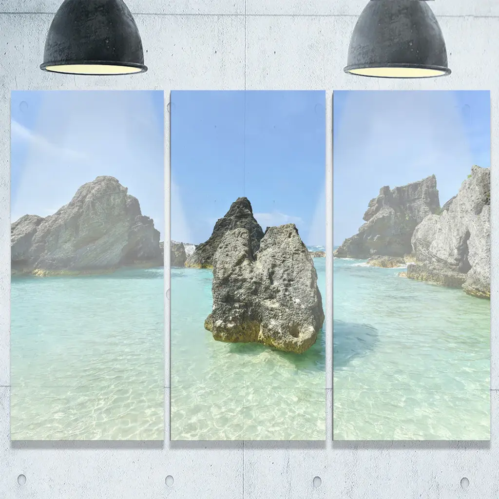 "Horseshoe Bay Cove Bermuda" Oversized Beach Metal Wall Art, 3 Panels, 36"x28"
