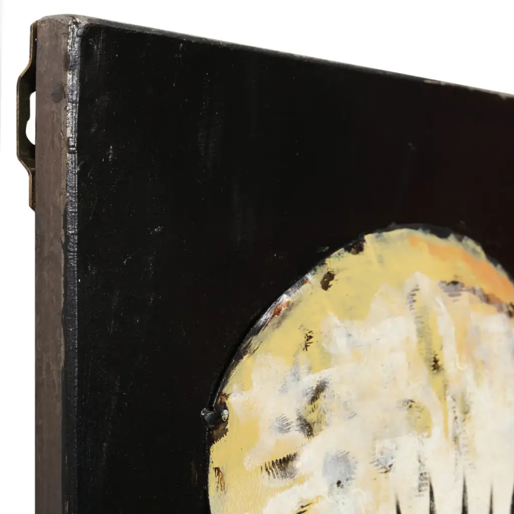 Depicting a closed-off space enclosing the ruins of a hand sculpture, abandoned and mysterious, this stunning tempera on wood painting is a unique artwork from the exclusive Hortus series, imbued with architectural and metaphorical value, symbolizing human disconnection and inability to follow the natural world. This product is part of the current exhibition "On Returning" at Artemest Galleria.