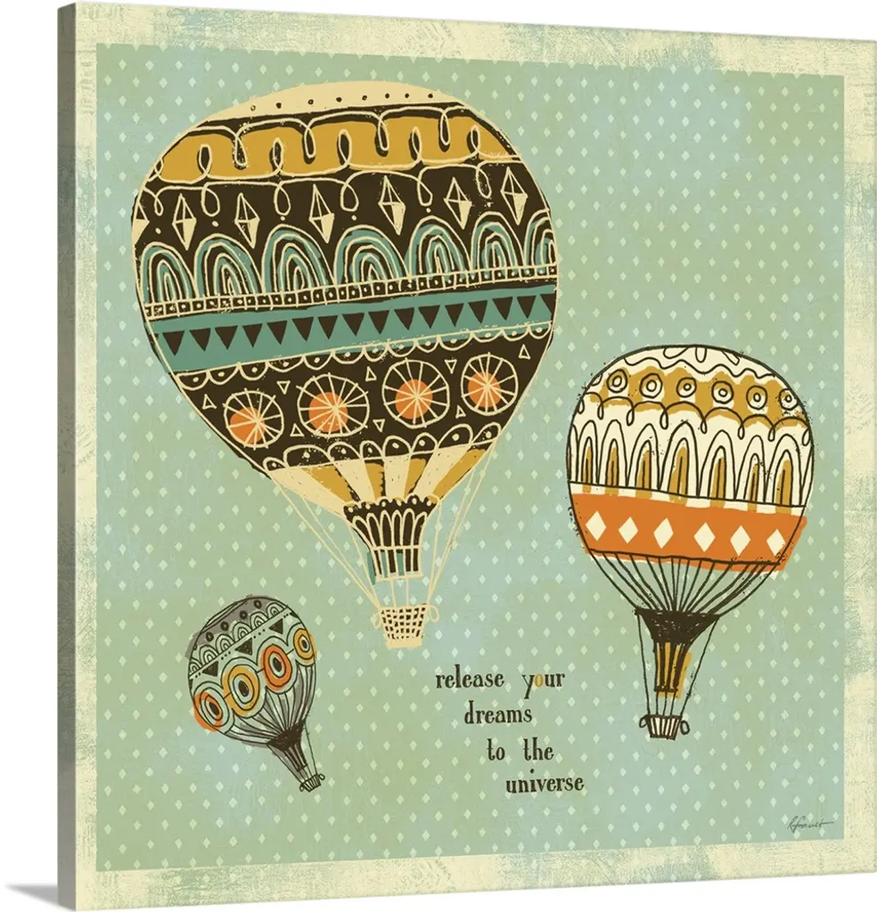 The Hot Air Balloon Illustration canvas art print is sure to make an impression on anyone who sees it. This artwork is gallery wrapped around a 1-inch solid wood frame and arrives carefully packaged and entirely ready to hang on the wall. Design Art only uses the highest resolution and pigments to ensure a crisp colorful print that is never faded or pixelated. This artwork is sure to be a conversation starter in any home or office.