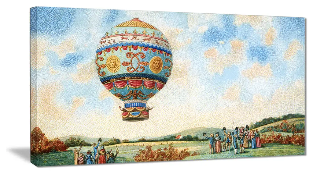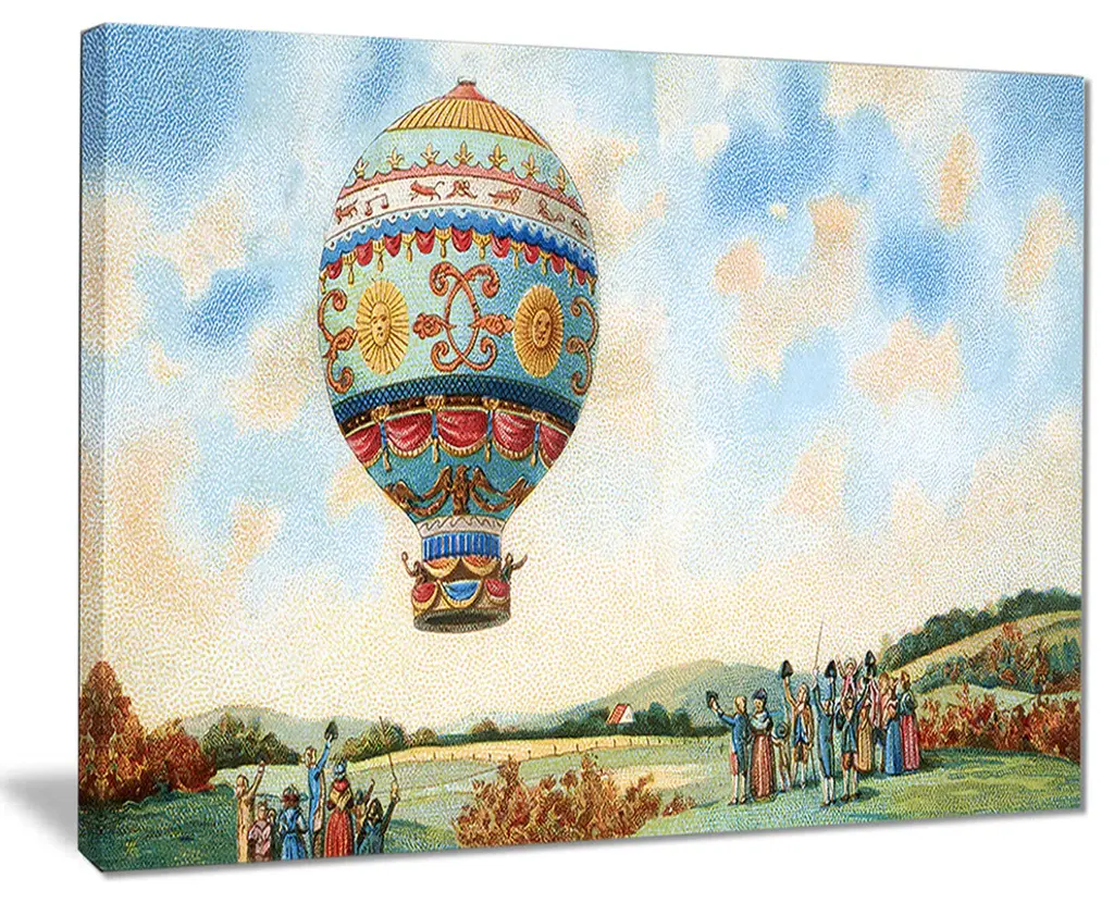 The Hot Air Balloon Illustration canvas art print is sure to make an impression on anyone who sees it. This artwork is gallery wrapped around a 1-inch solid wood frame and arrives carefully packaged and entirely ready to hang on the wall. Design Art only uses the highest resolution and pigments to ensure a crisp colorful print that is never faded or pixelated. This artwork is sure to be a conversation starter in any home or office.