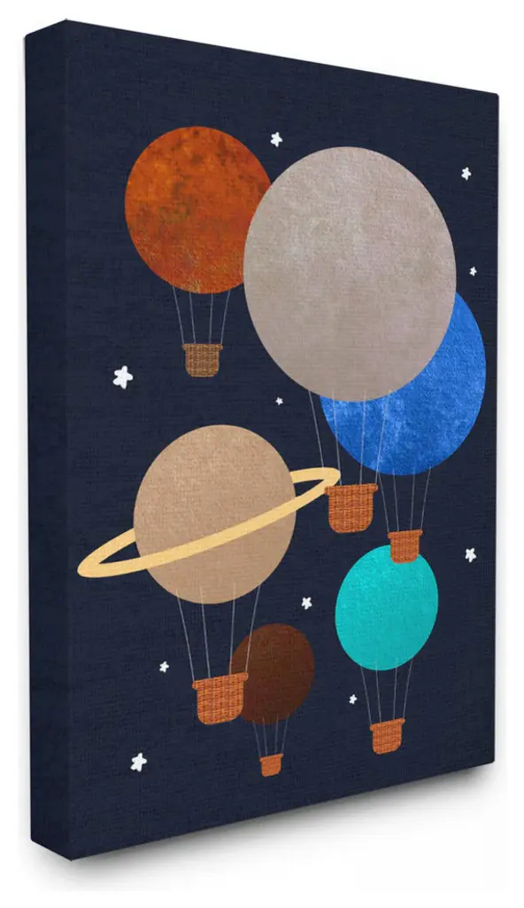 Hot Air Balloon Planets, 16"x20", Stretched Canvas Wall Art