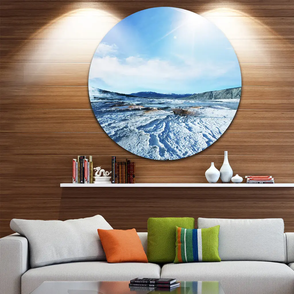 Bring Contemporary Abstraction to your home with this large Circle Metal wall art. This Hot Sprint under Bright Sunlight Metal Artwork makes it the focal point of any room or office. - White Gloss Coating ensures colors are extra vibrant with light reflection.- Aluminum grade Sheet Metal with 1 inch mounting frame on the back giving the illusion that the artwork is floating on the wall..- Mounting Brackets are included along with instructions.- High Quality Digital images are created directly into a glossy aluminum panel producing a stunning and captivating print into the glossy finish of the metal.- Water, Fire and Scratch resistant HD Aluminum panels.- Looks better than any photo paper and guaranteed to last at least 20 years- Easy to clean with a microfiber cloth. Colors are far superior to regular Canvas Art. - Easy to Hang