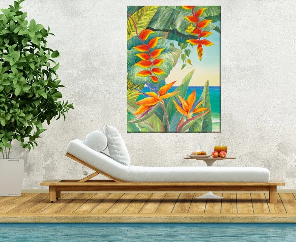 All weather outdoor canvas art. Transport yourself into nature with this stunning and vivid outdoor art piece. This unique and inspired artwork features bright, beautiful colors and is printed on canvas using giclee printing technology. Each piece is waterproof, UV protected, and gallery wrapped on vinyl stretcher bars, making it safe for the outdoors and keeping it protected from the elements. Hang this colorful, nature-inspired piece on your patio, porch or even a fence and watch as your outdoor living space is transformed.