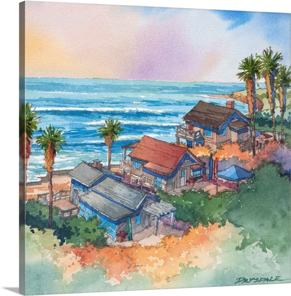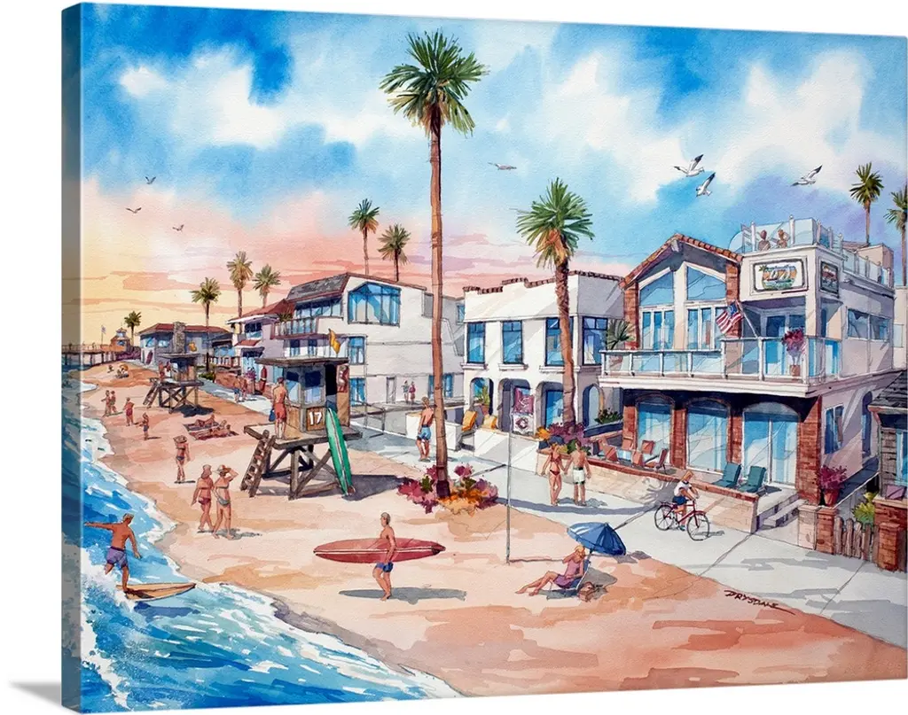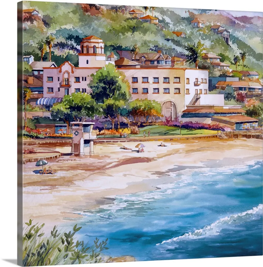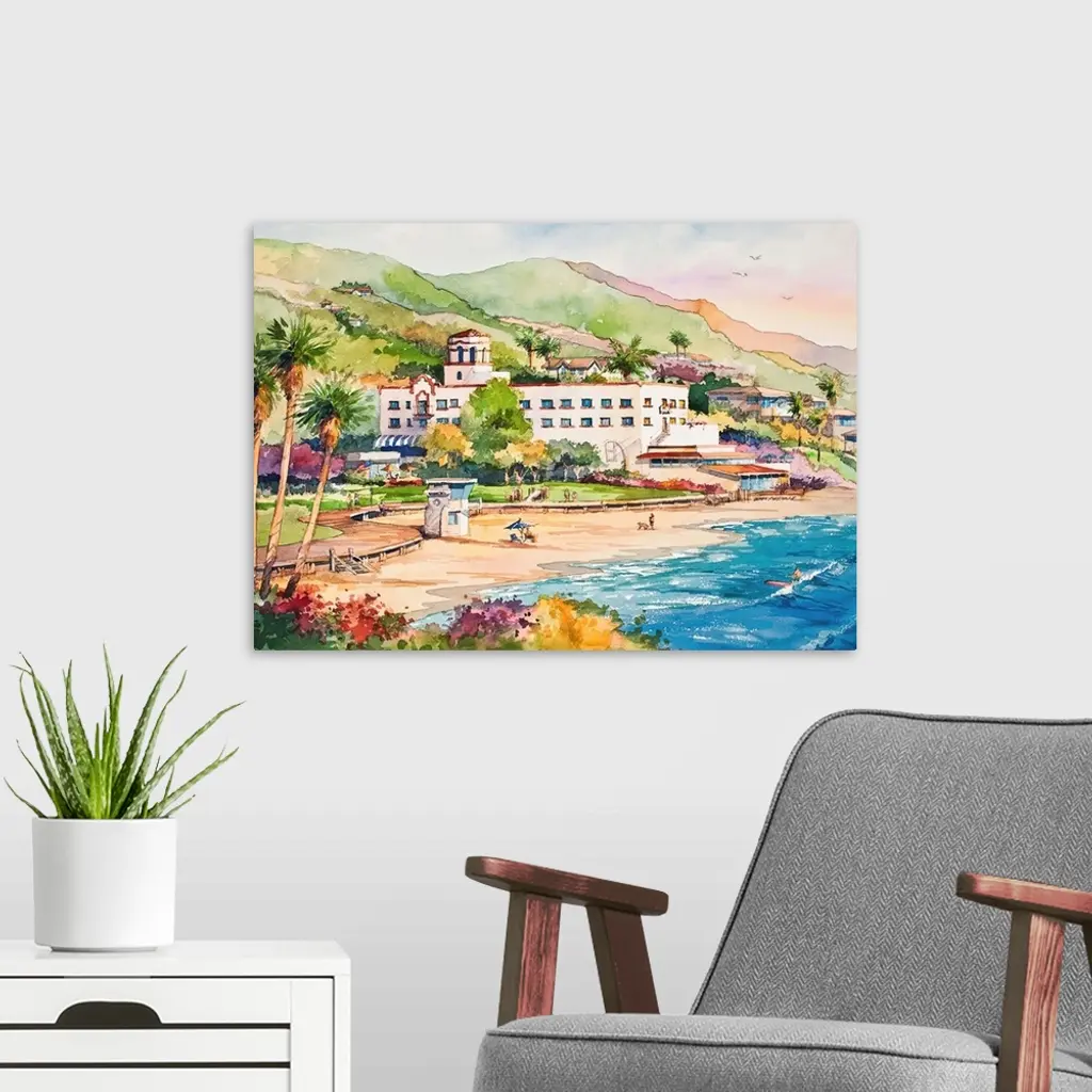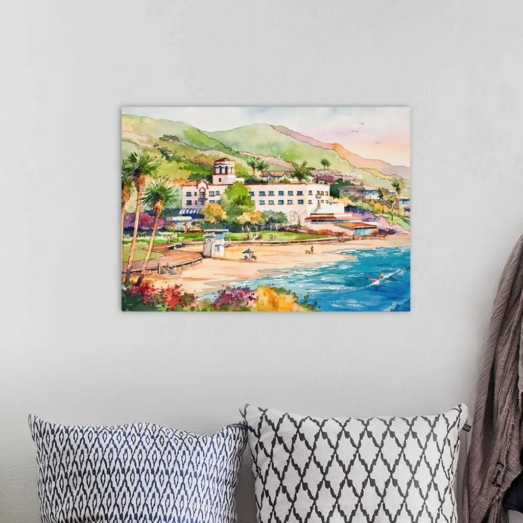 Landscape watercolor painting of Laguna Main Beach, CA.