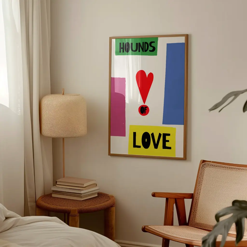 Hounds Of Love Music Retro Art PrintAvailable in sizes A2 (420 x 594 mm)A3 (297 x 420 mm)A4 (210 x 297 mm) All in the detailsSold without frameDesigned by Fanclub owners and sisters, Johanna and Felicity.Giclée printed in Nottingham UK on Munken pure smooth cream paper which is certified by the Rainforest Alliance Program for FSC® Standards.All A4 & A3 prints are packed in eco friendly 100% biodegradable poly bags A2 prints are shipped in cardboard tubes.Designed by Fanclub owners and sisters, Johanna and Felicity in our UK studio.