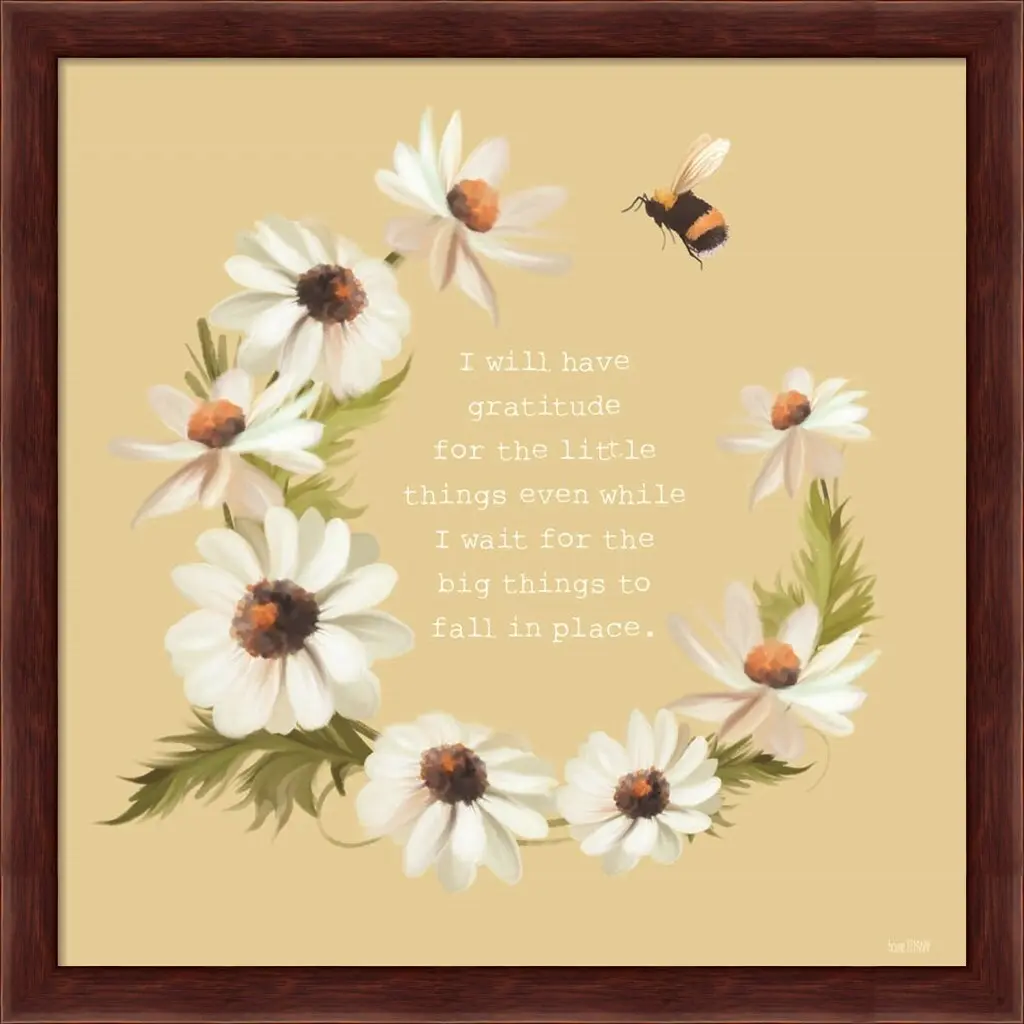 Gratitude for the Little Things by House Fenway is a high quality piece of framed artwork. The finished size of this piece is 13.25" X 13.25". It has a Mahogany Deep Box frame and is finished with high quality glass. 100% Satisfaction Guaranteed.