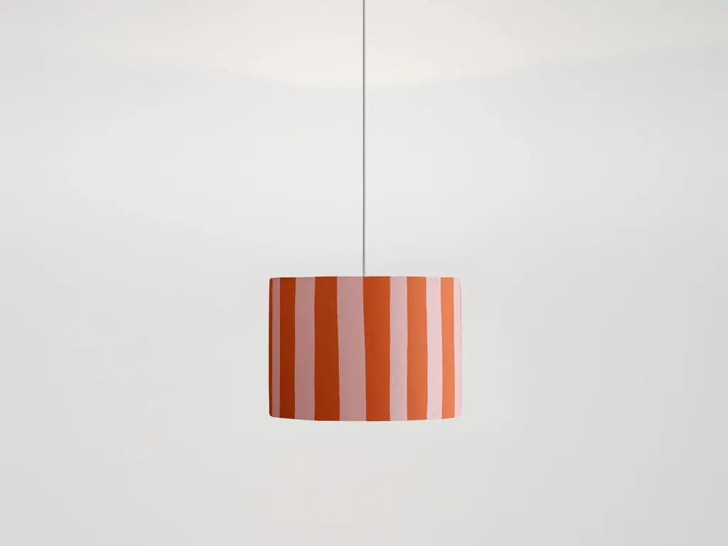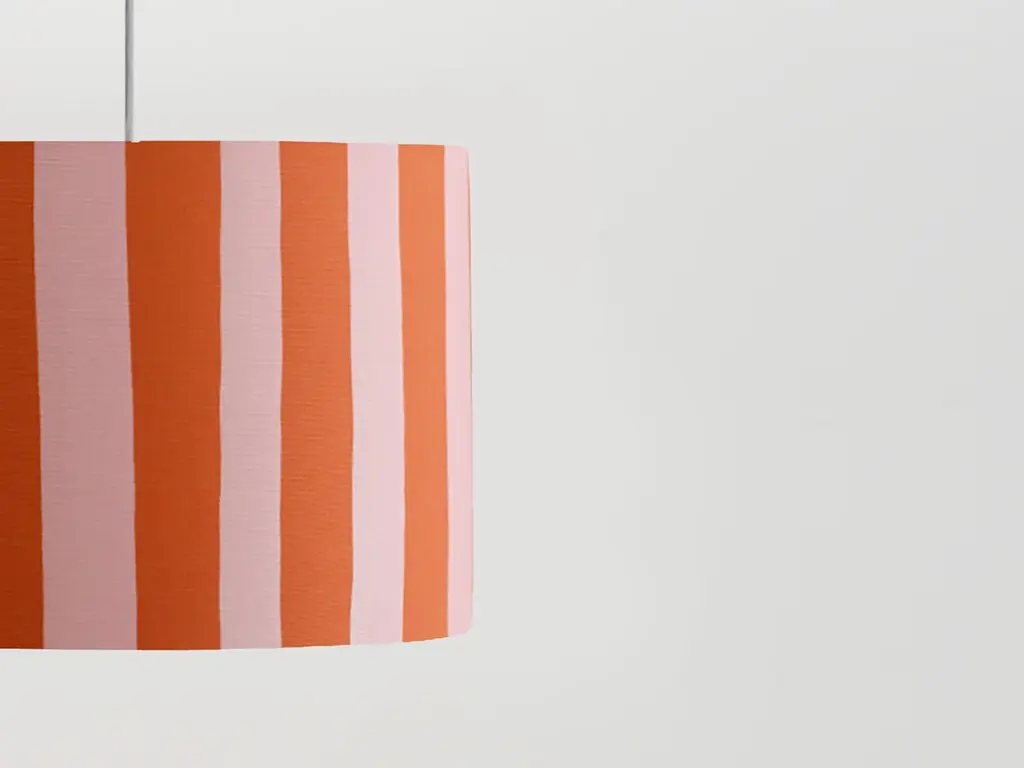 Stripes have been treated to the houseof update with this fun, contemporary hand drawn version that gives a traditional pattern that relaxed, modern feel we’ve been looking for. The Stripe printed shade is perfect for updating existing light fittings without having to worry about hard wiring new pendant lights. Our lampshade designs are all created bespoke by an independent designer in the UK, while our fabrics support local designers and industries. Designed to add a pop of colour to your space while perfectly complementing neutral tones. Lampshade only. Height 23cm, width 35cm and depth 35cm. Weight 0.4kg.Additional information:Material: CottonColour: Pink/ orangeHeight: 23cmWidth: 35cmDepth: 35cmWeight: 0.4kgCare: Remove light from fitting and wipe carefully with a clean, soft, dry cloth.