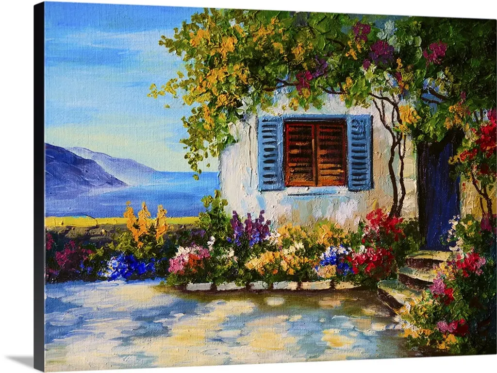 Bring Contemporary Abstraction to your home with this large Circle Metal wall art. This Houses near Sea Metal Artwork makes it the focal point of any room or office. - White Gloss Coating ensures colors are extra vibrant with light reflection.- Aluminum grade Sheet Metal with 1 inch mounting frame on the back giving the illusion that the artwork is floating on the wall..- Mounting Brackets are included along with instructions.- High Quality Digital images are created directly into a glossy aluminum panel producing a stunning and captivating print into the glossy finish of the metal.- Water, Fire and Scratch resistant HD Aluminum panels.- Looks better than any photo paper and guaranteed to last at least 20 years- Easy to clean with a microfiber cloth. Colors are far superior to regular Canvas Art. - Easy to Hang